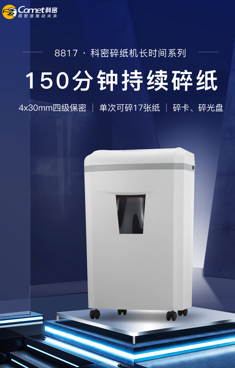 科密(comet)8817 4级保密大型办公商用碎纸机(单次17张 持续150分钟 30L 可碎卡、光盘)