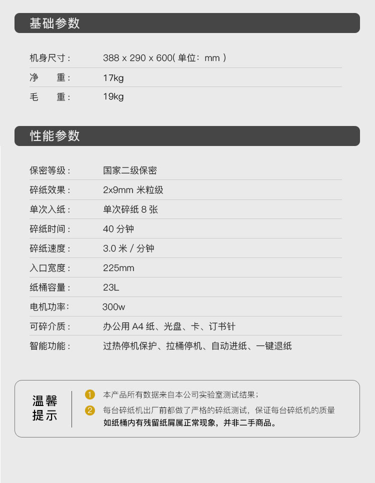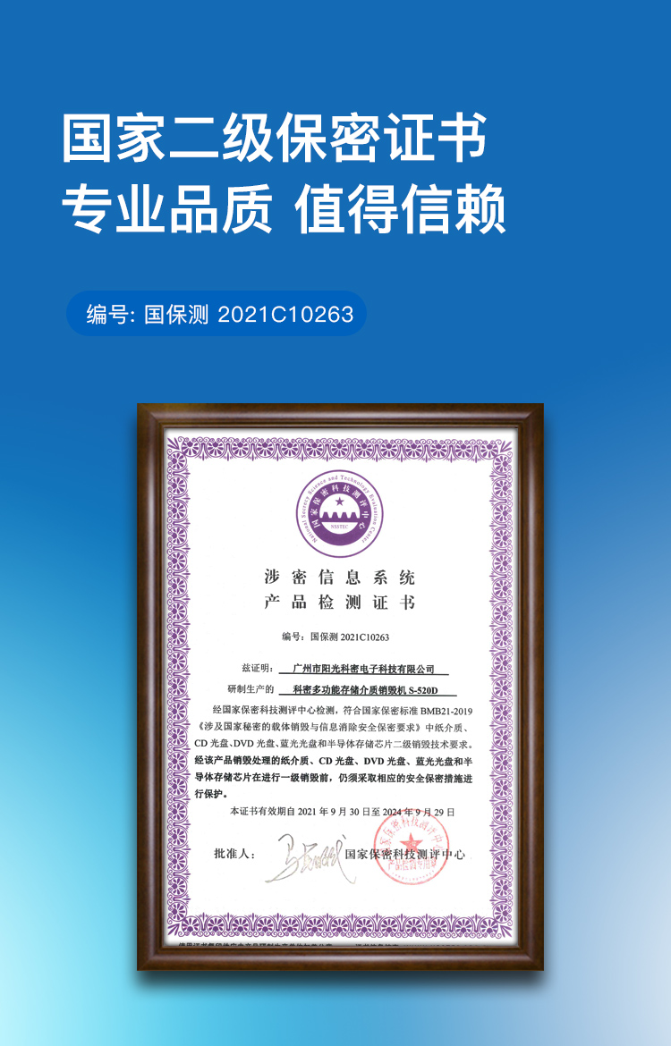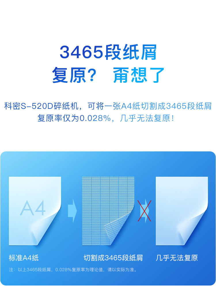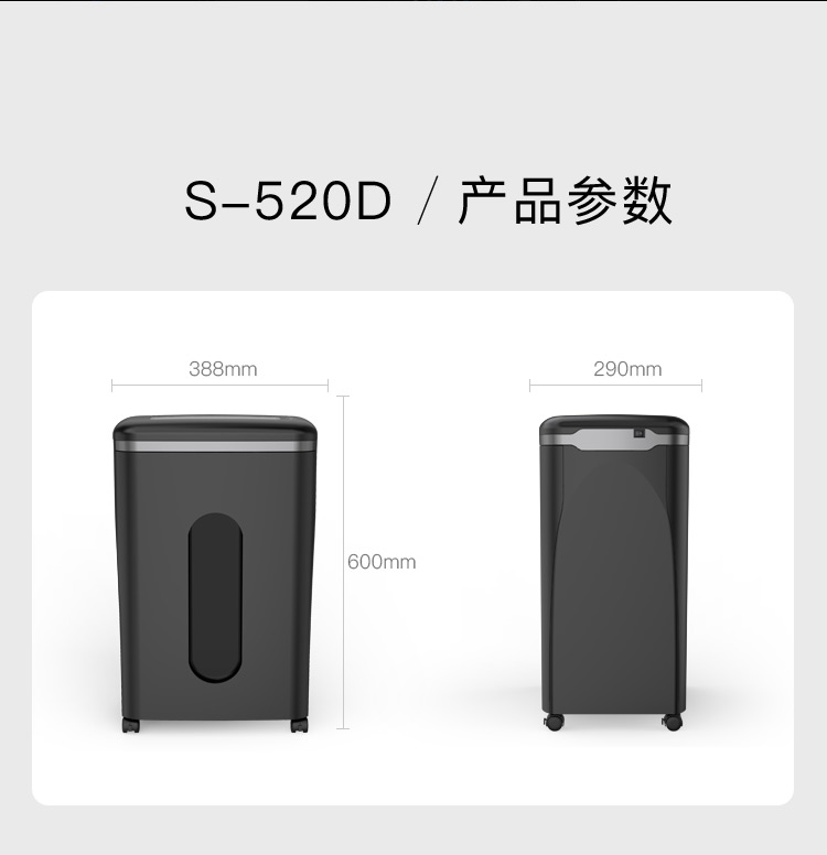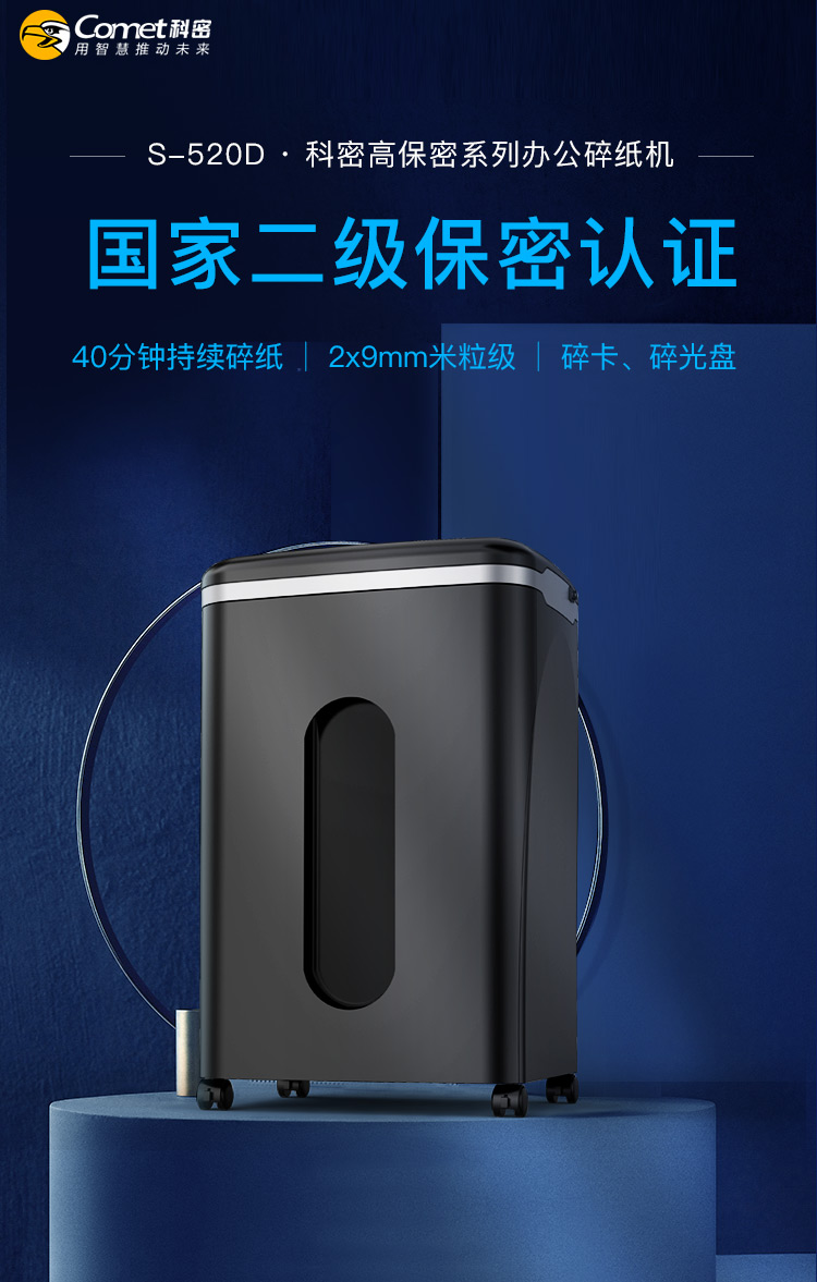 科密(comet)S-520D 国家二级保密认证办公商用碎纸机(单次8张 持续40分钟 23L 可碎卡、光盘、订书针)