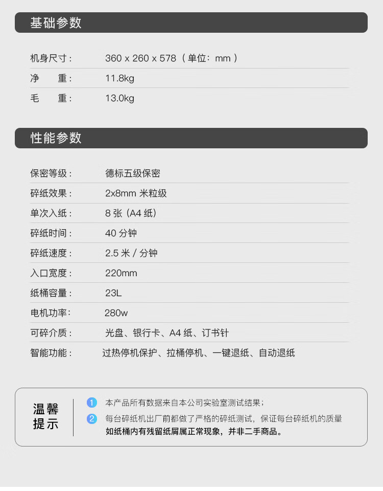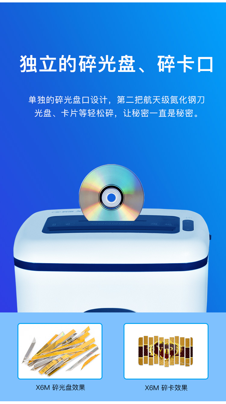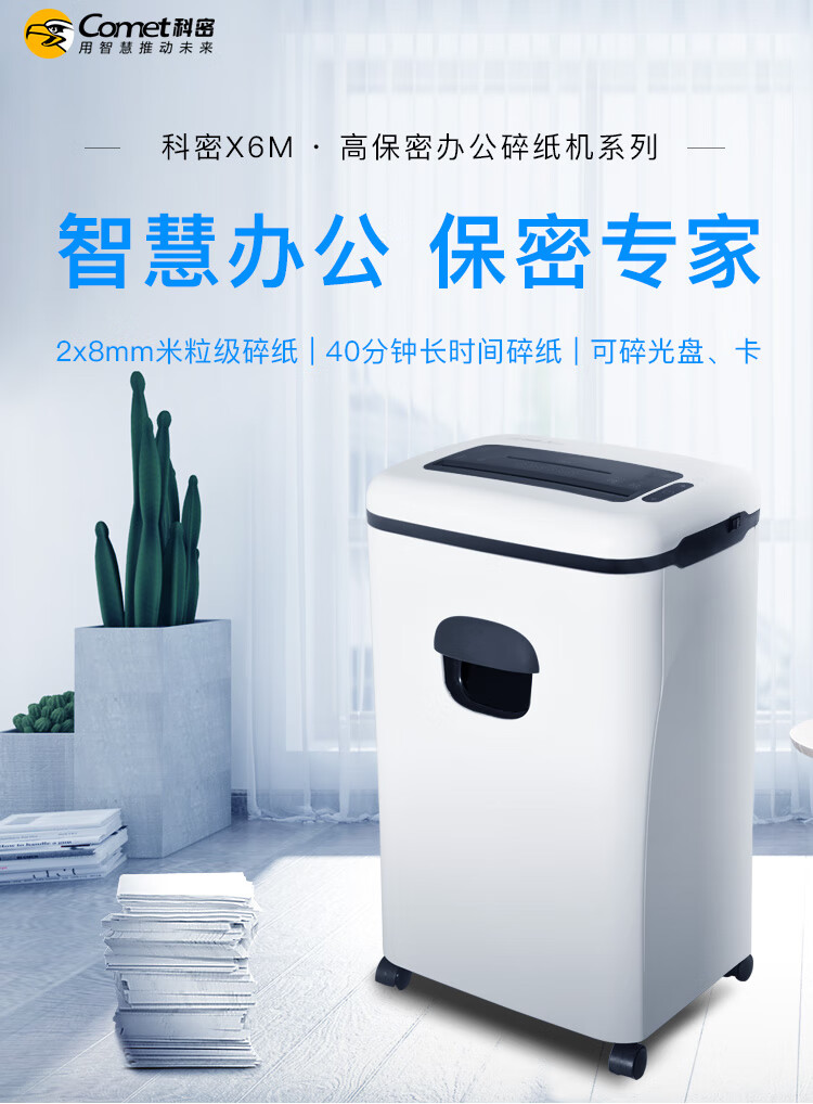 科密(comet)X6M 5级保密办公商用碎纸机(单次8张 持续40分钟 23L 可碎卡、光盘)