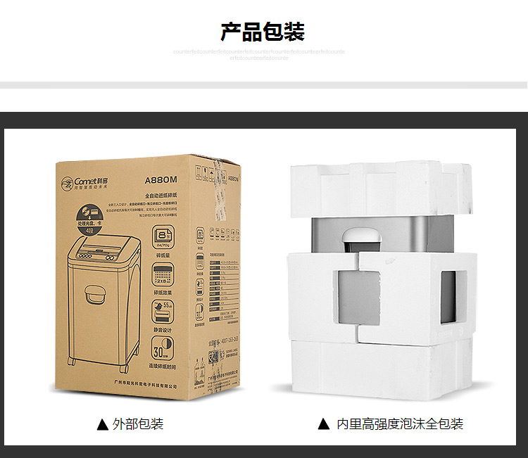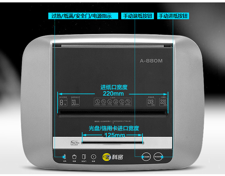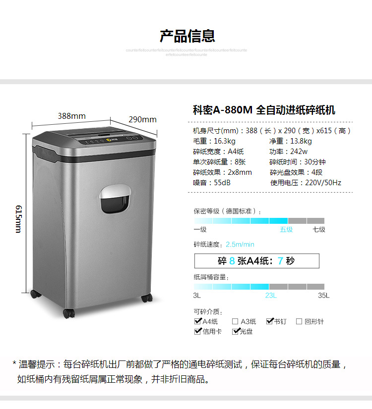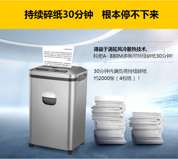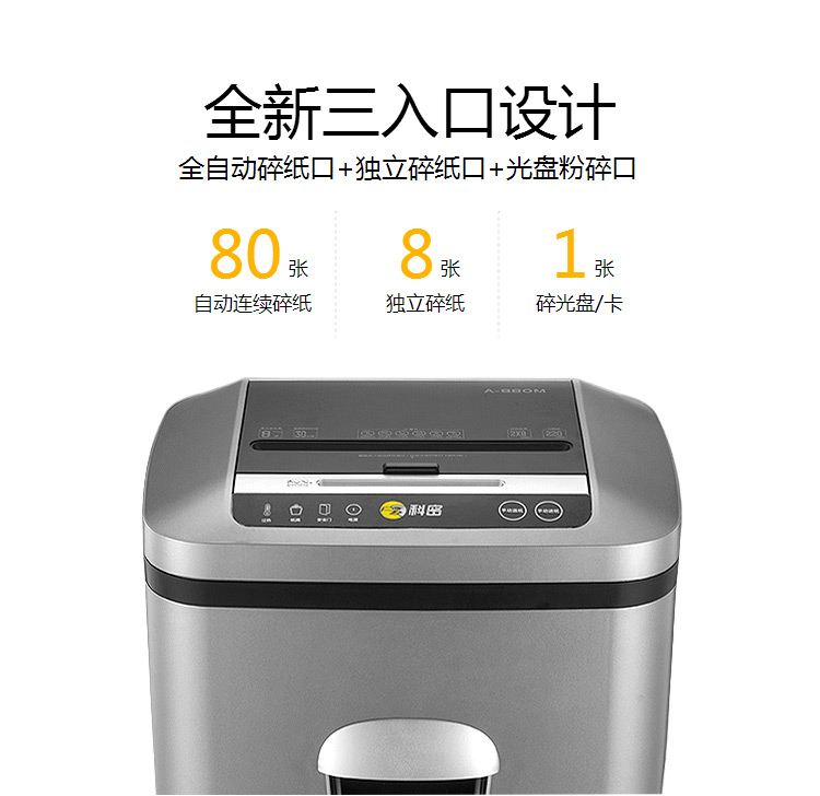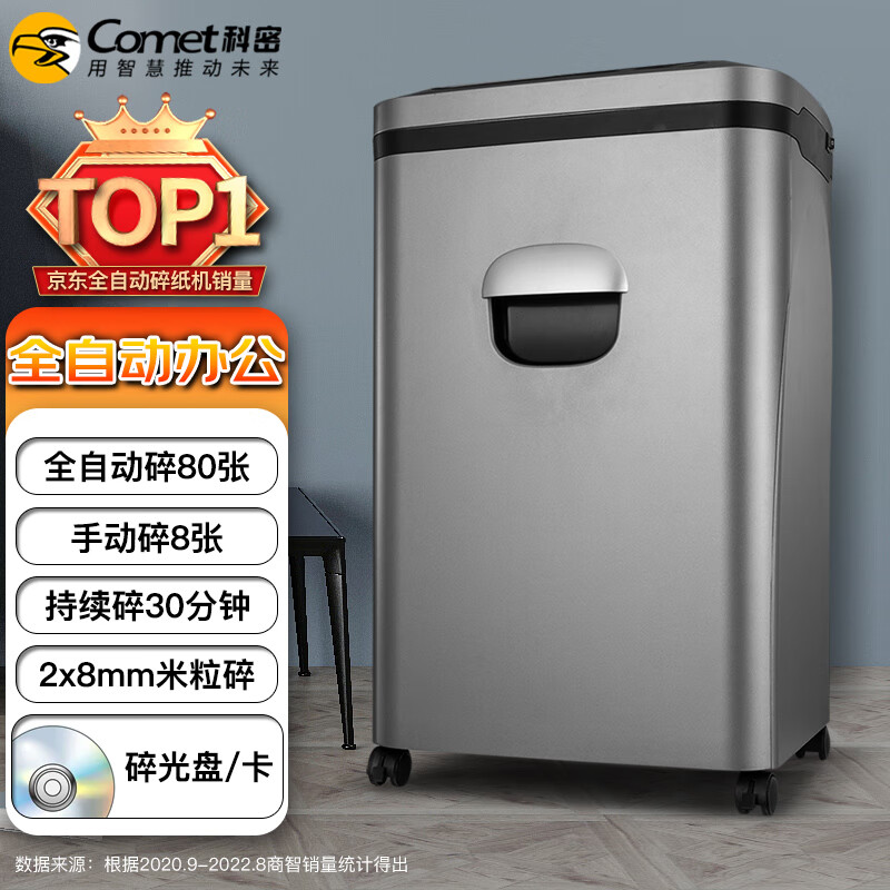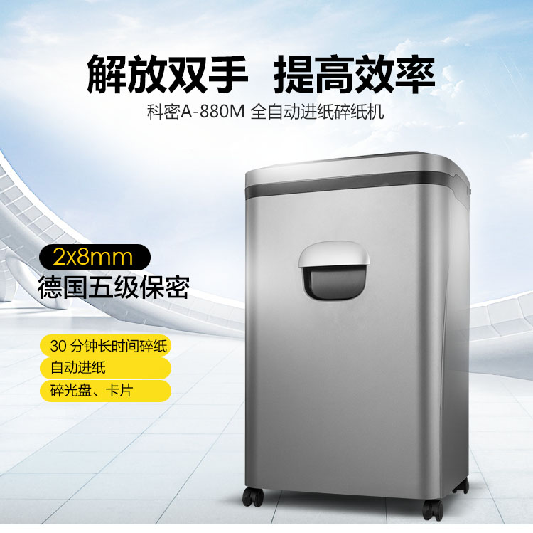 科密(comet)A-880M 5级保密办公全自动碎纸机(全自动80张 手动8张 持续30分钟 23L 可碎卡、光盘)