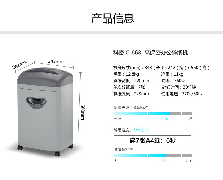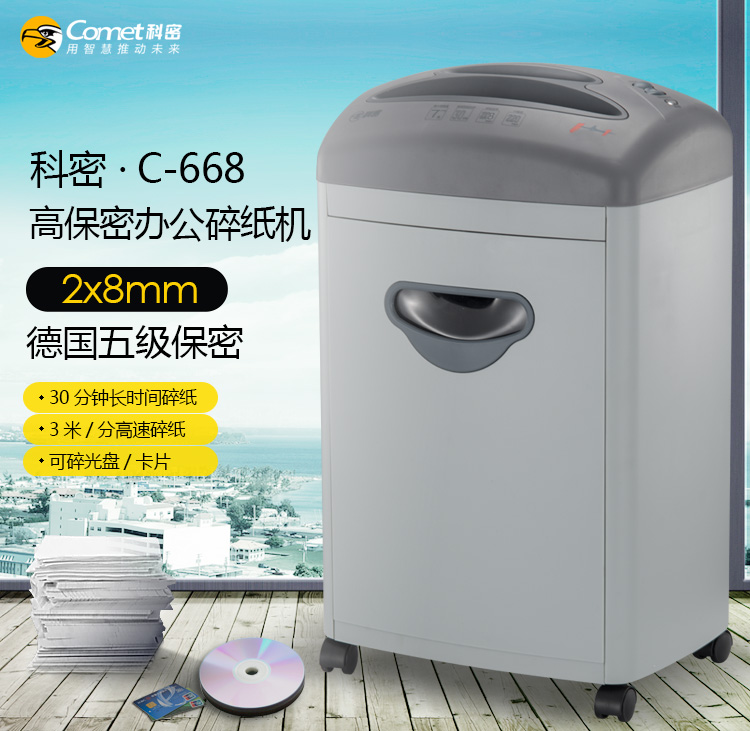 科密(comet)C-668 5级保密办公商用碎纸机(单次7张 持续30分钟 20L 可碎卡、光盘)