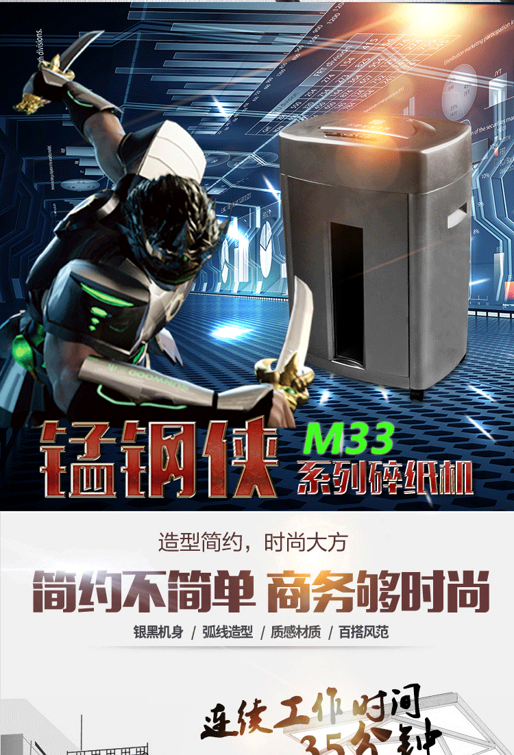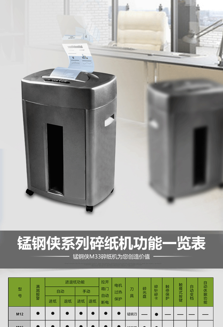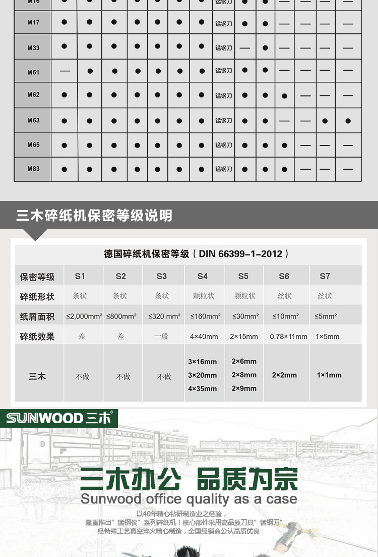三木(SUNWOOD)M系列碎纸机 4级保密(单次12张 持续35分钟 25L 可碎纸,针)M33 厂家直发