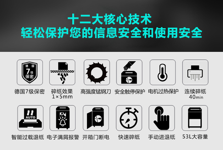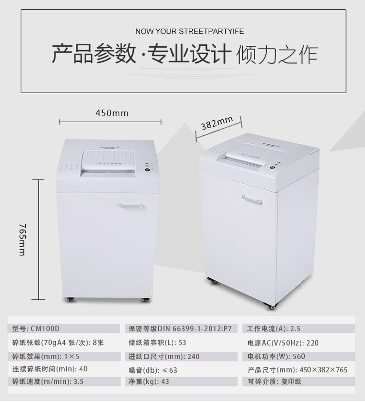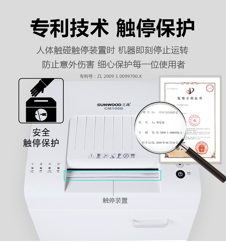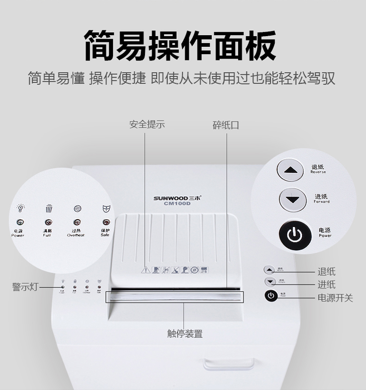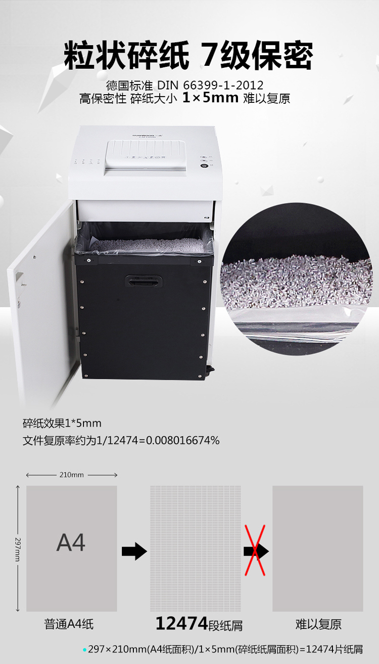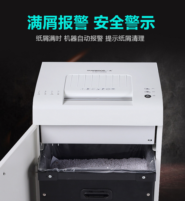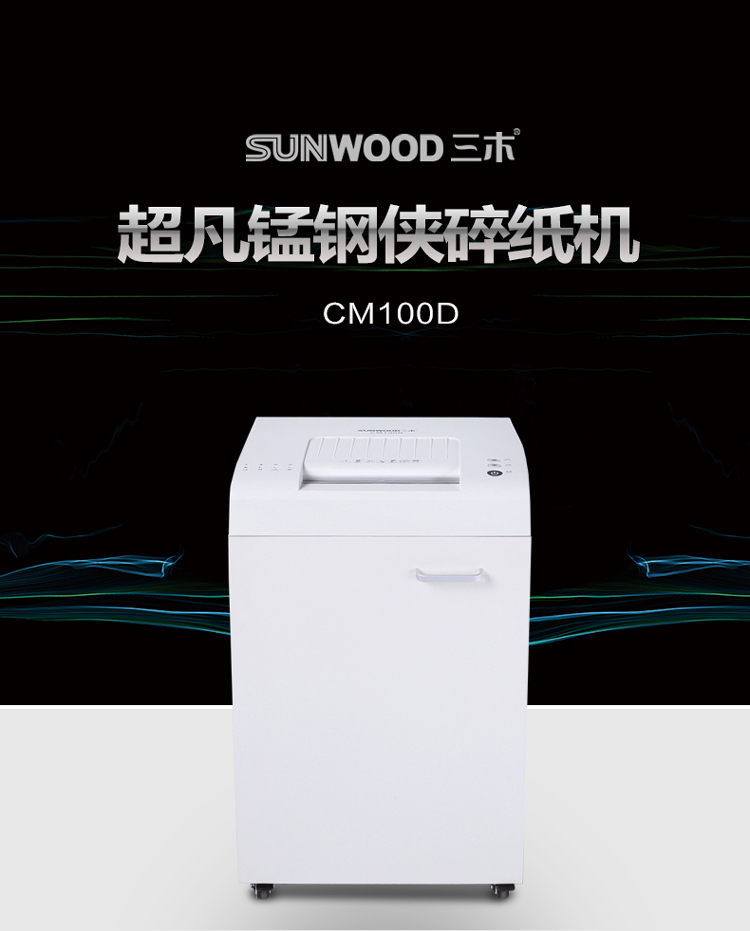 三木(SUNWOOD)7级保密专业销毁碎纸机 (单次8张 持续40分钟 53L 可碎纸,回形针、订书针) CM100D
