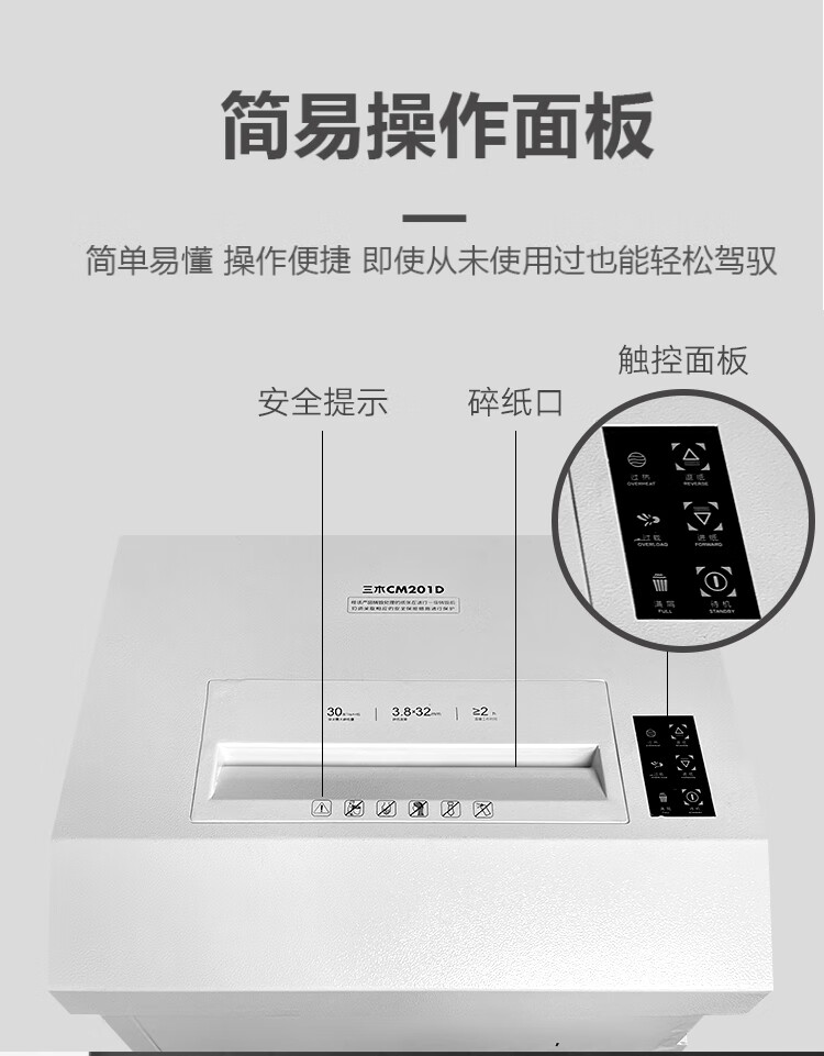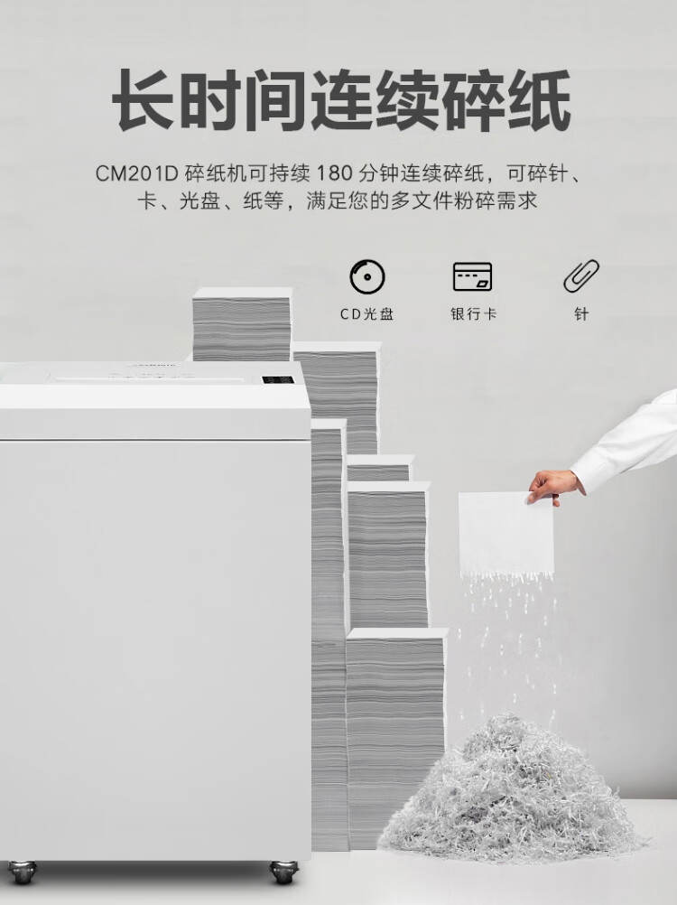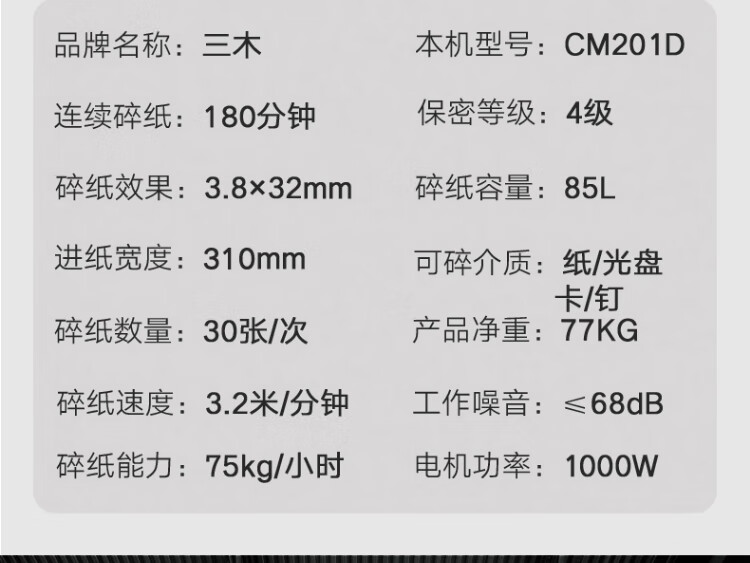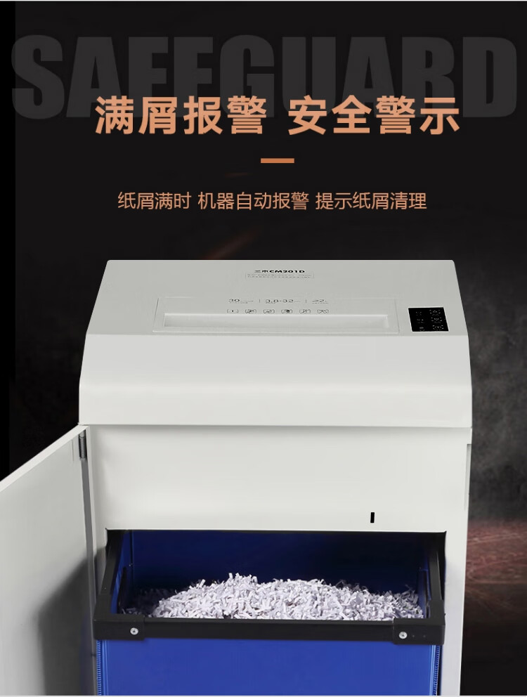 三木(SUNWOOD)4级保密专业销毁碎纸机 (单次30张 持续180分钟 85L 可碎纸,光盘,卡,回形针、订书针) CM201D