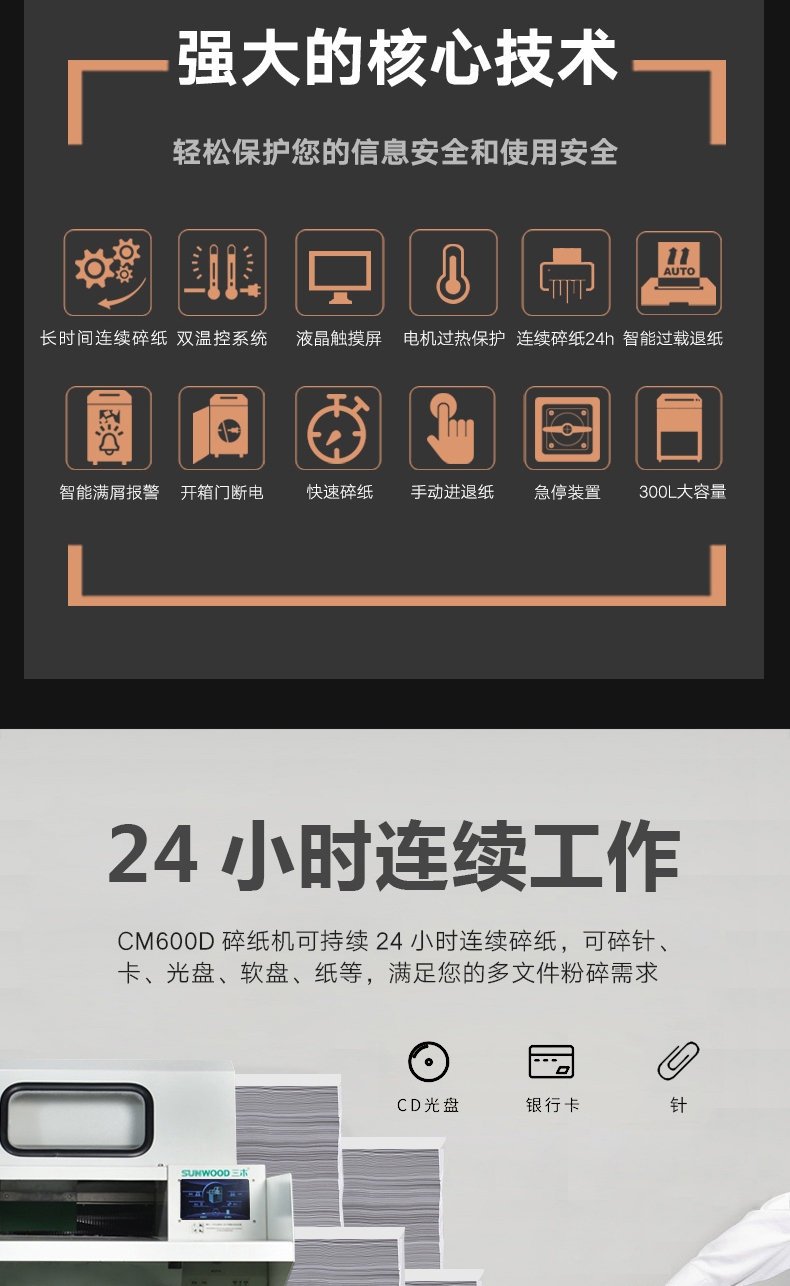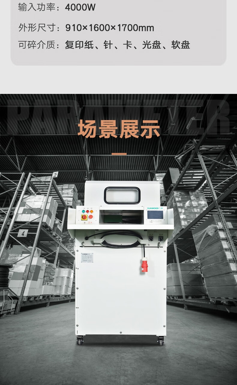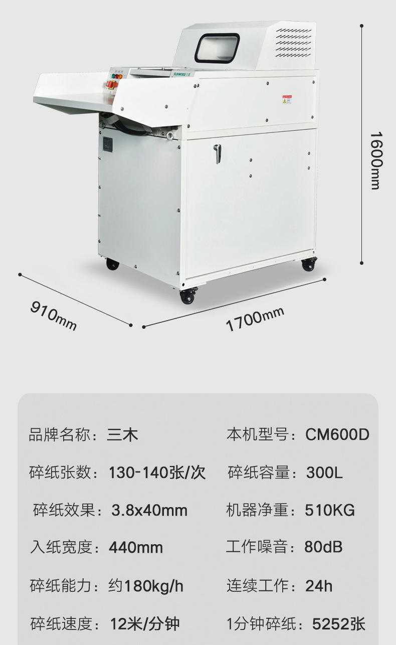三木(SUNWOOD)涉密销毁系列工业碎纸机 4级保密(单次140张 24H 300L 可碎纸,卡,光盘,软盘,针)CM600D 厂家直发