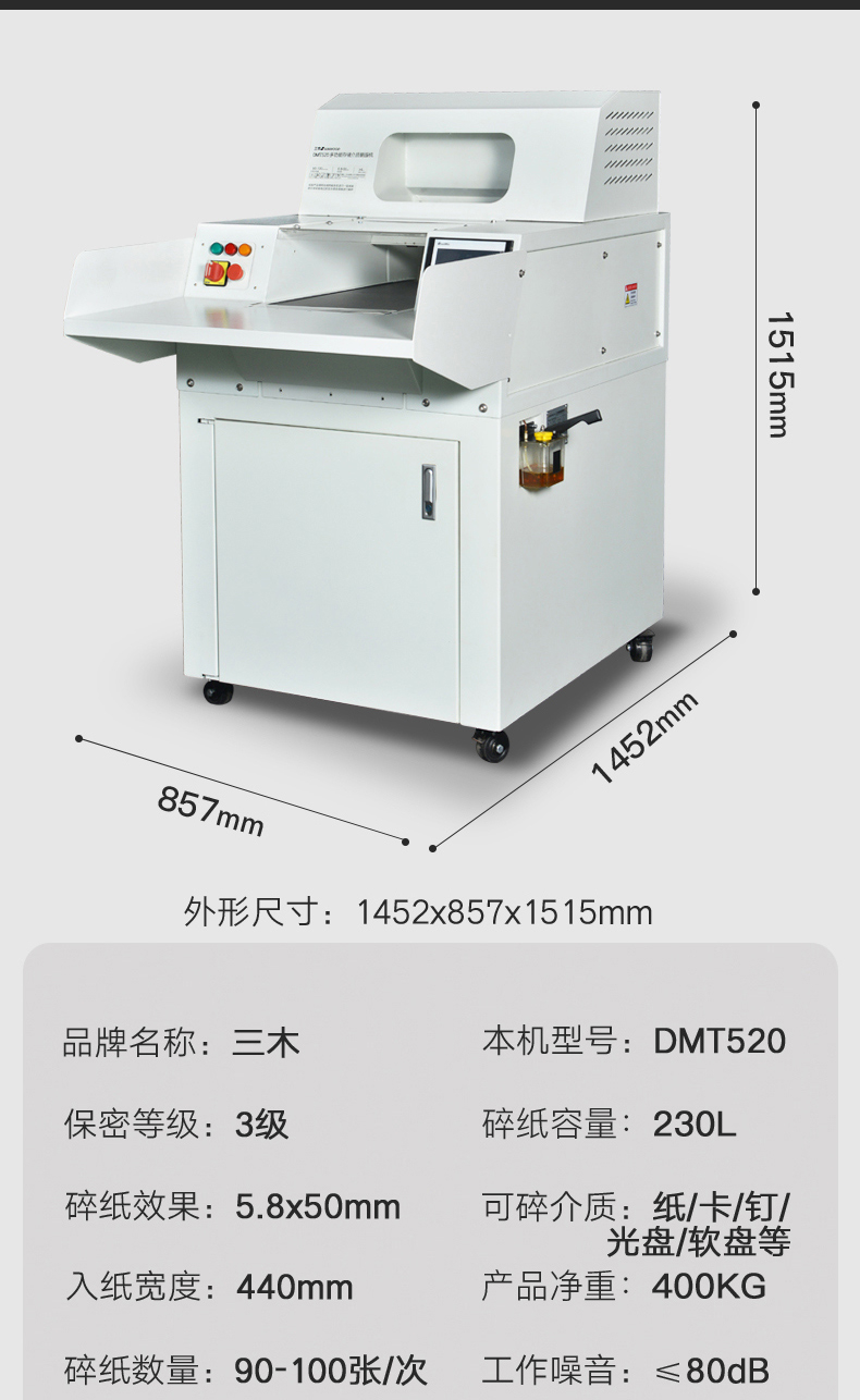 三木(SUNWOOD)涉密销毁工业碎纸机销毁机3级保密(可碎卡,光盘,纸,针,硬盘,U盘)DMT520 厂家直发