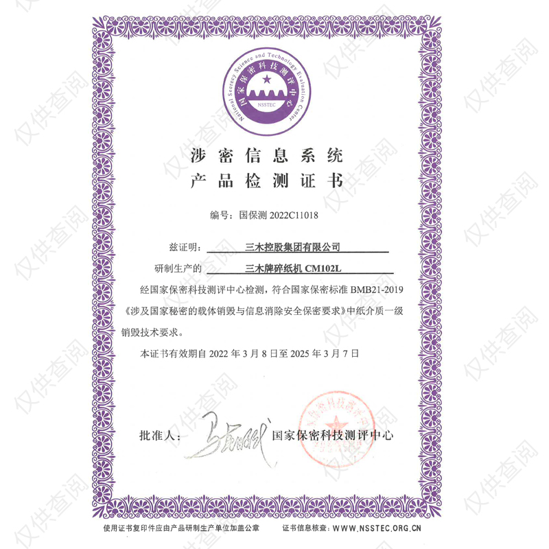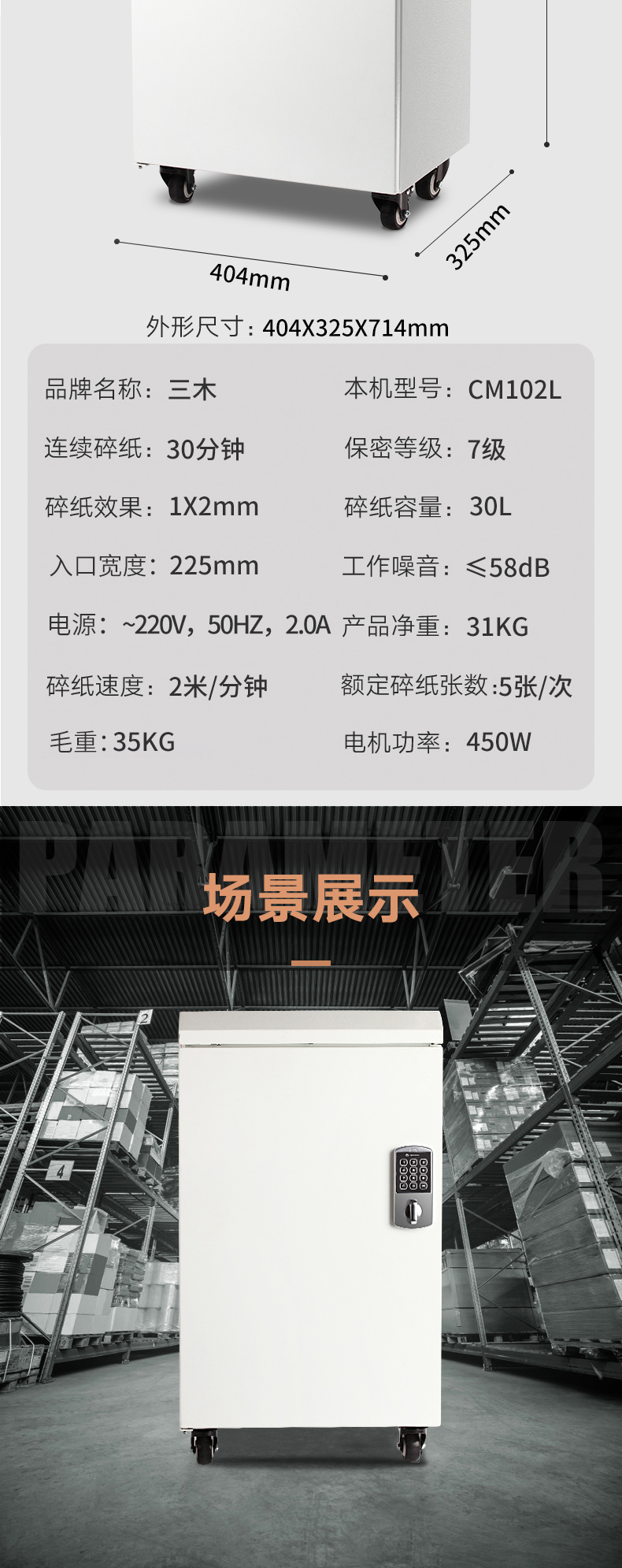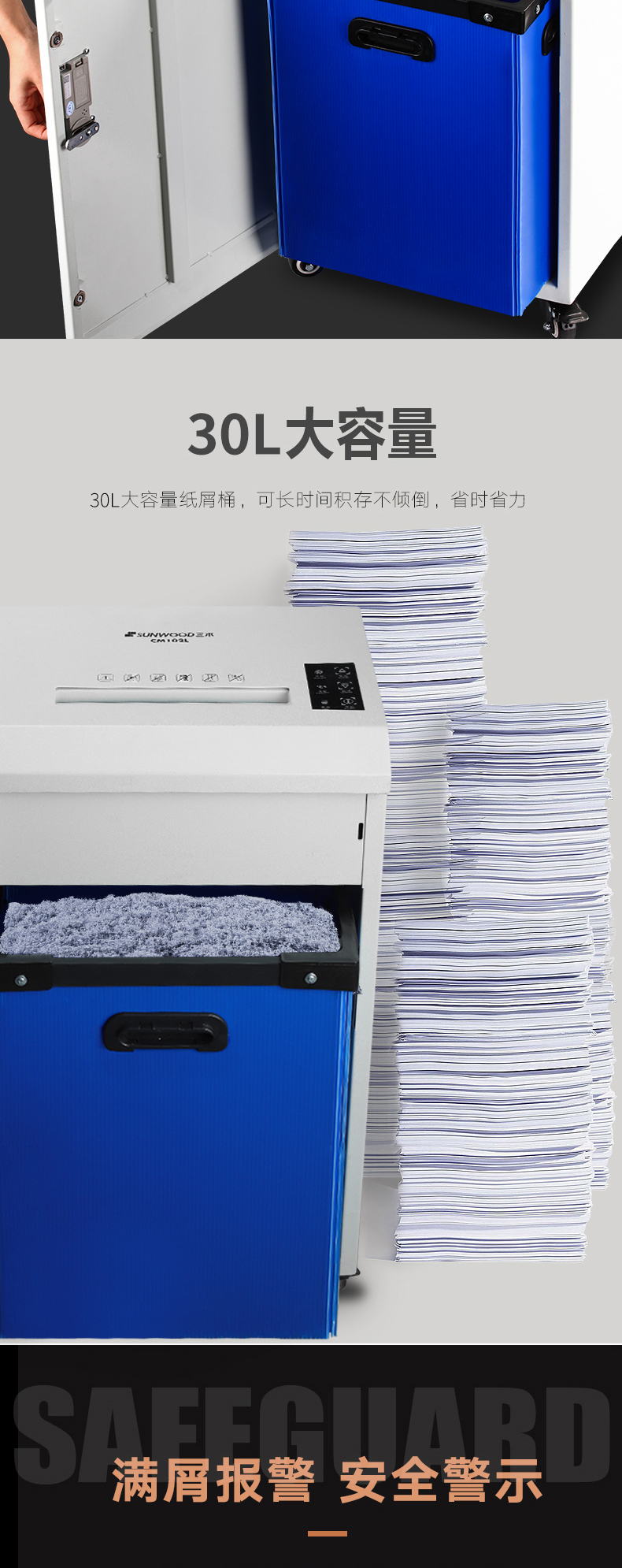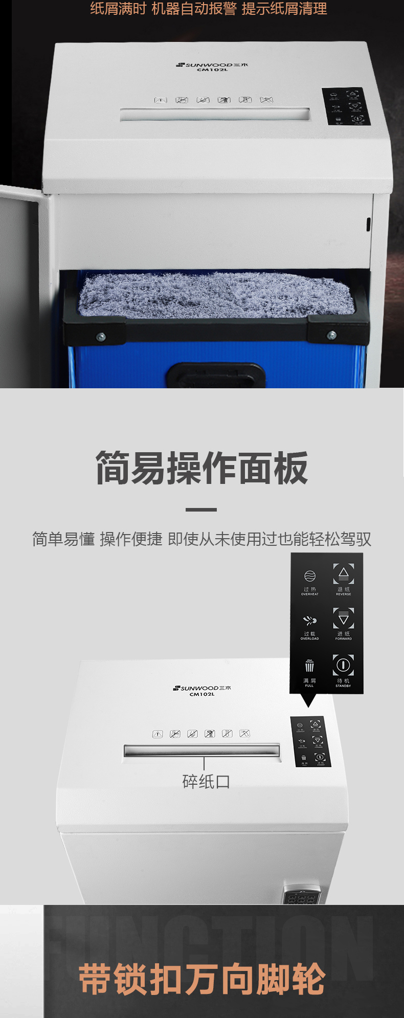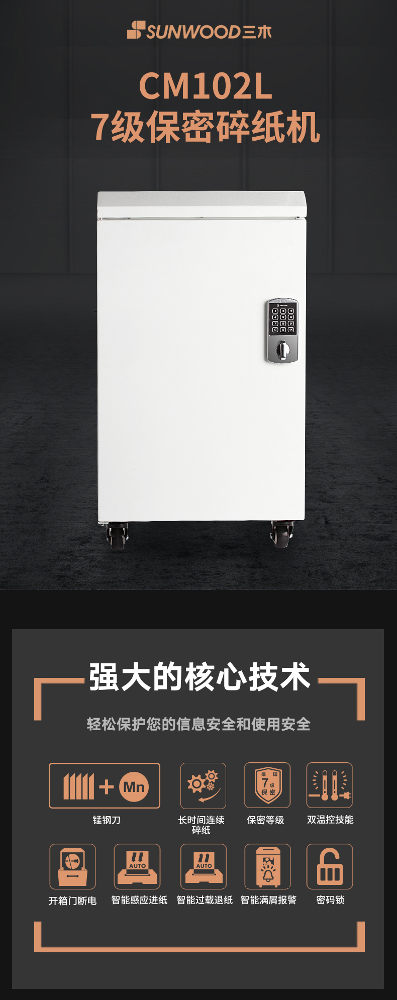 三木(SUNWOOD)涉密销毁系列碎纸机 7级保密 带密码锁(单次5张 持续30分钟 30L)CM102L 厂家直发