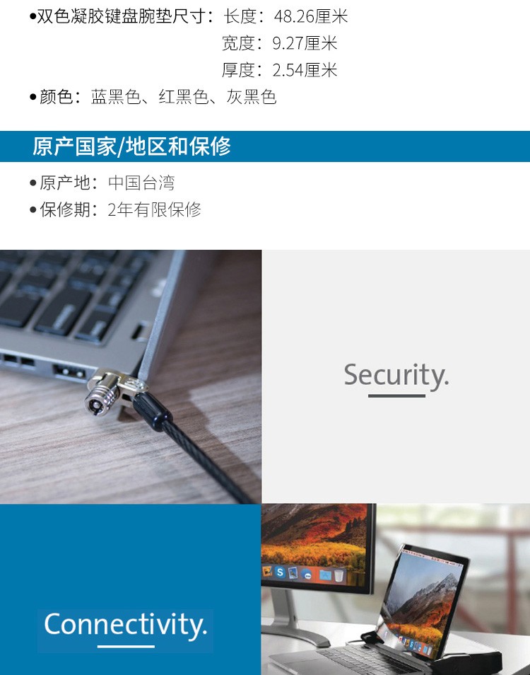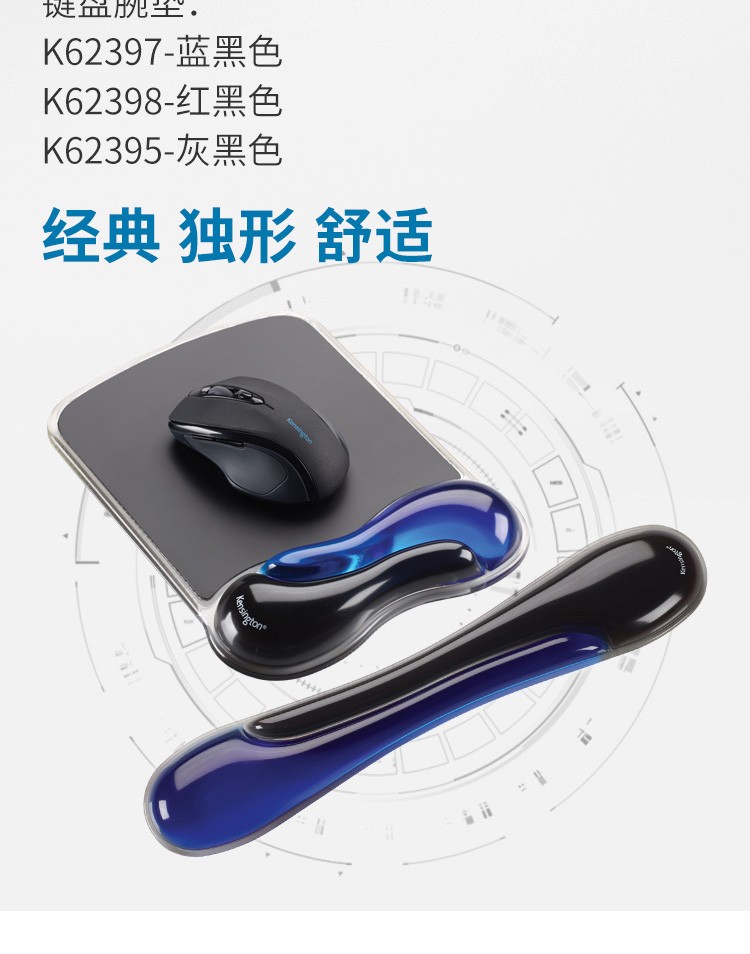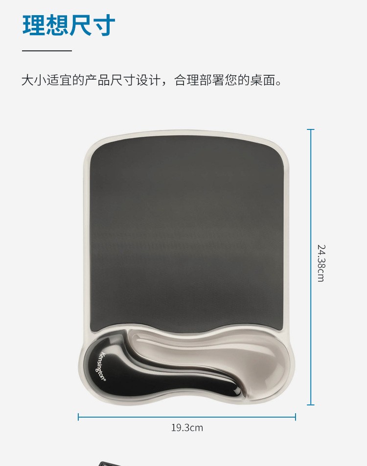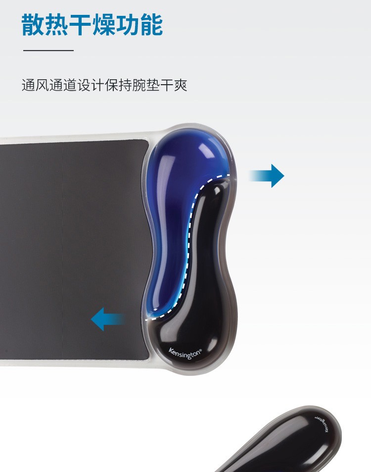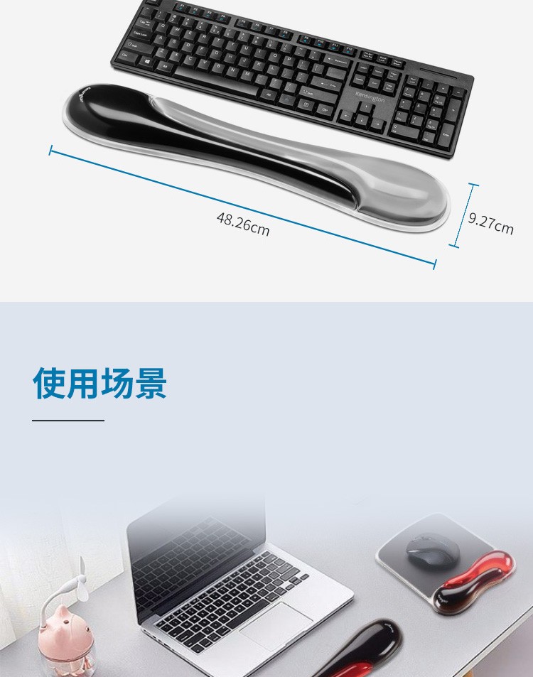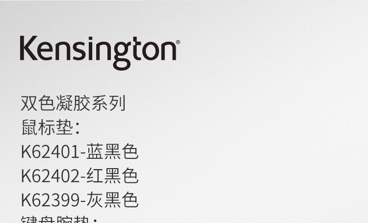 肯辛通(Kensington)护腕鼠标垫 舒适人体工学鼠标垫护腕托家用办公游戏 K62414黑/黑 键盘腕垫