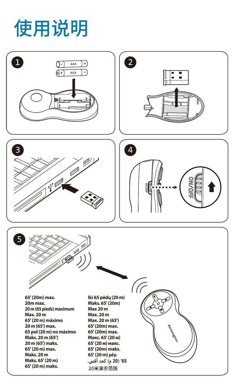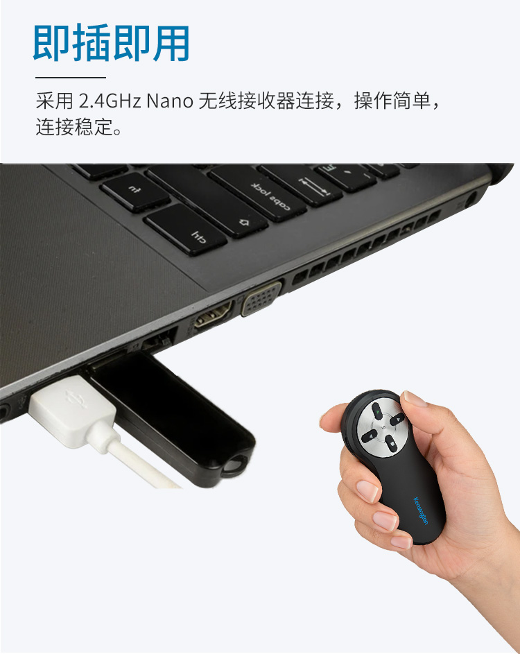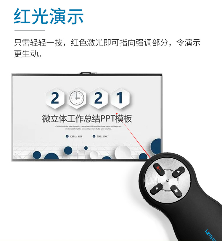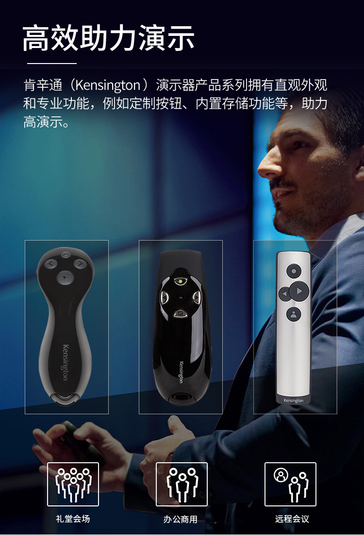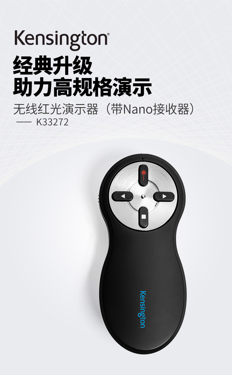 肯辛通Kensington 无线翻页笔翻页激光笔 投影笔遥控笔演示器电子红光 带接收器 K33272