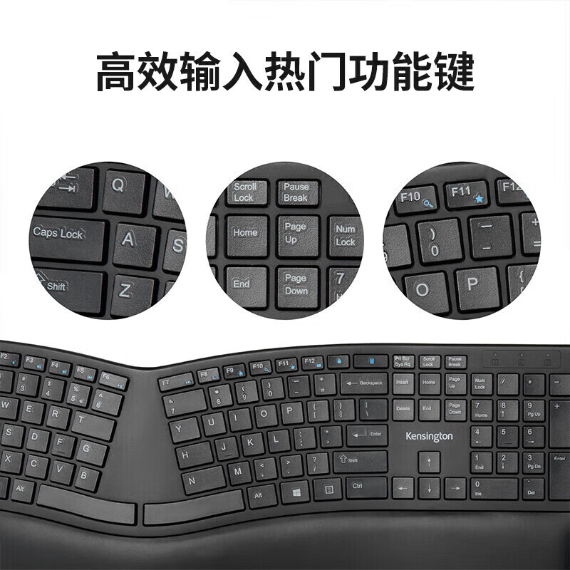 肯辛通 Kensington 人体工学无线键盘 办公键盘有线键盘适用于通用笔记本 有线键盘(黑)K75400