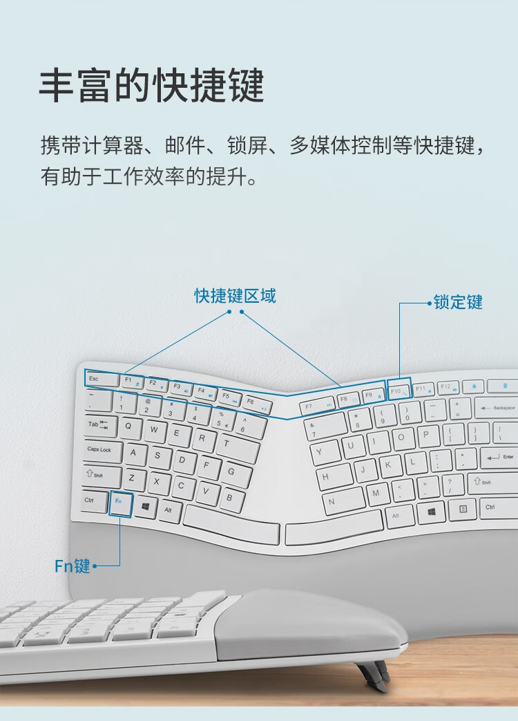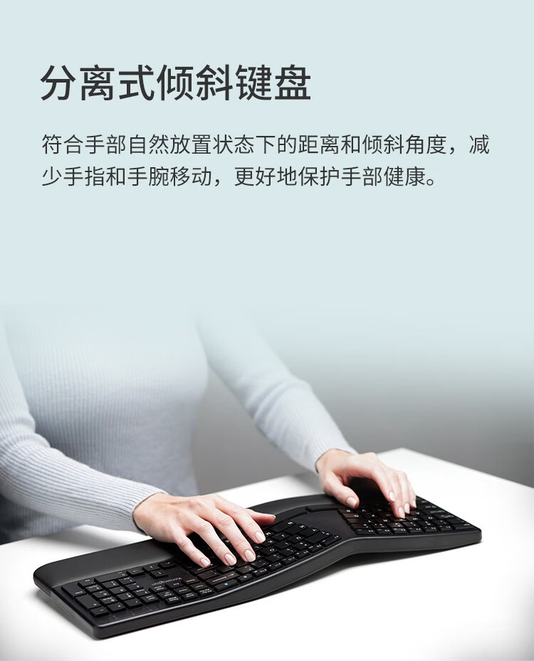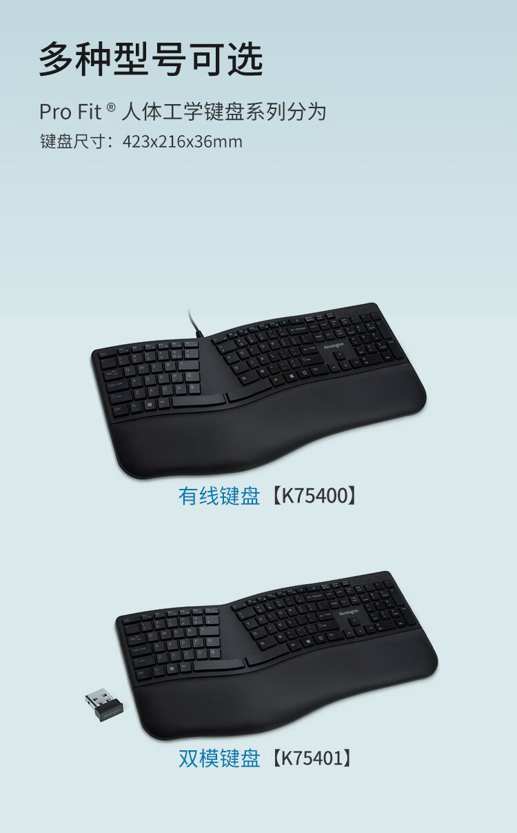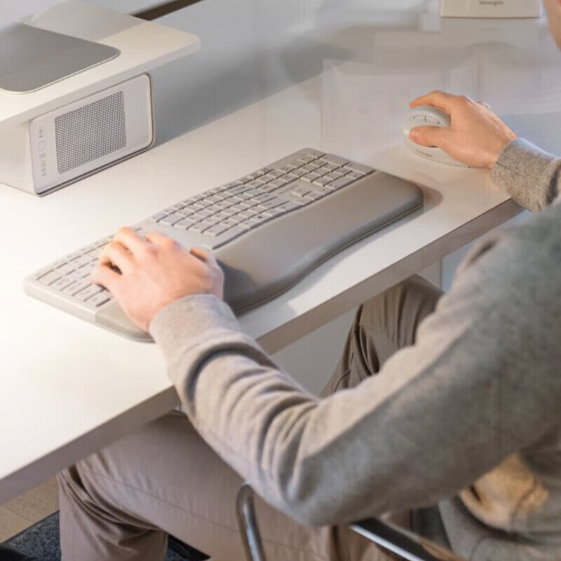 肯辛通 Kensington 人体工学无线键盘 办公键盘有线键盘适用于通用笔记本等 双模无线键盘(灰)K75402