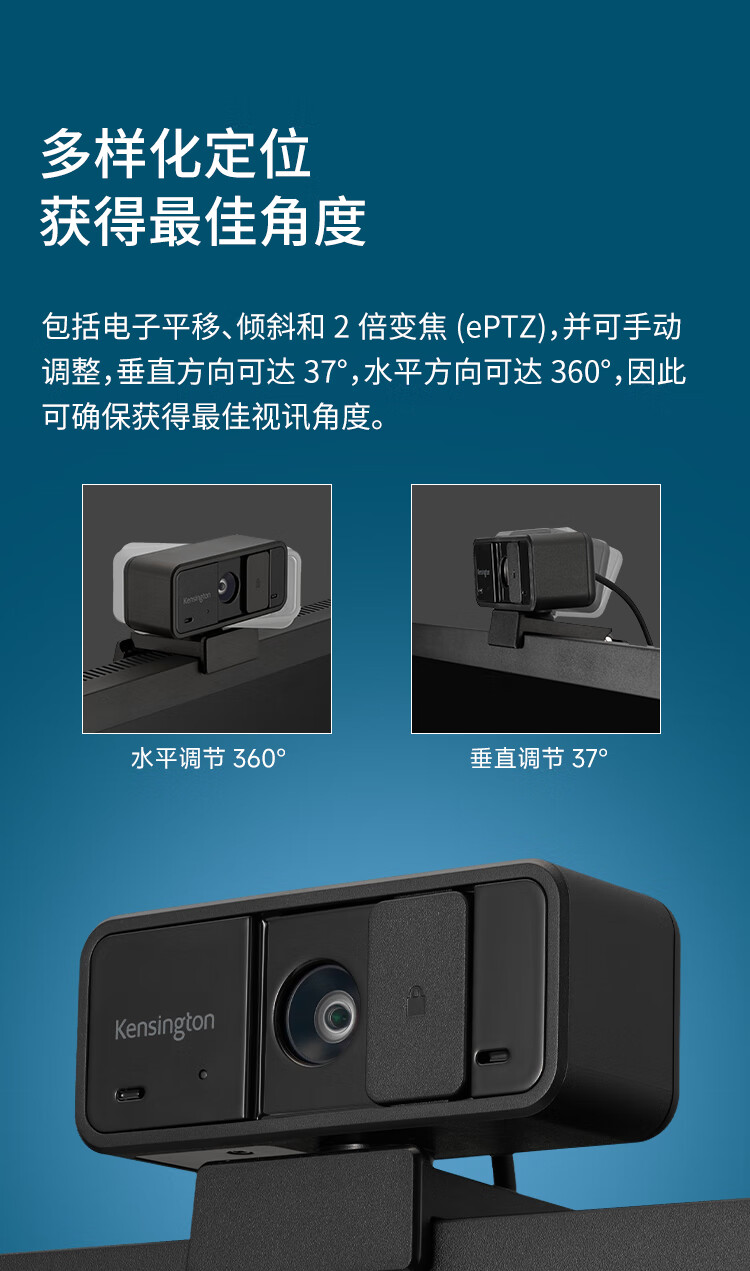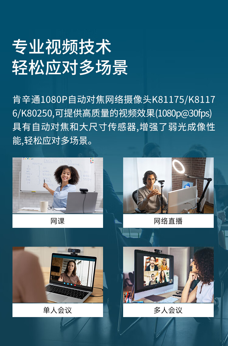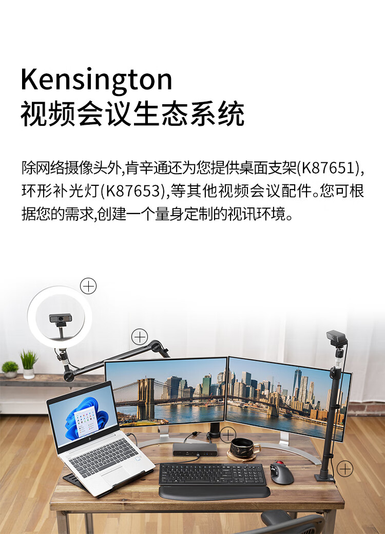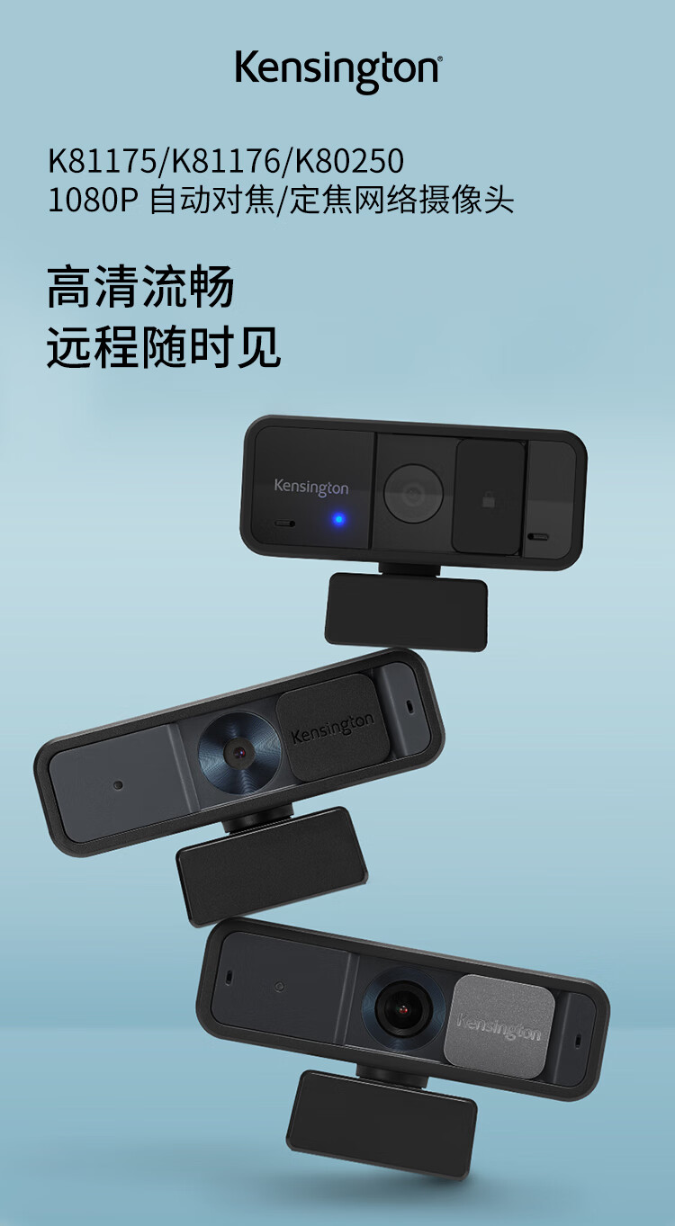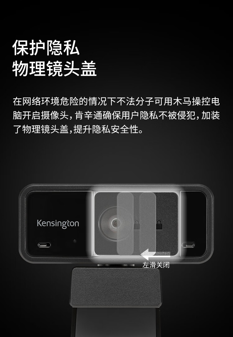 肯辛通(Kensington) 摄像头1080P 全高清自动对焦网络摄像头直播网课会议摄像头 K81175 75°视野