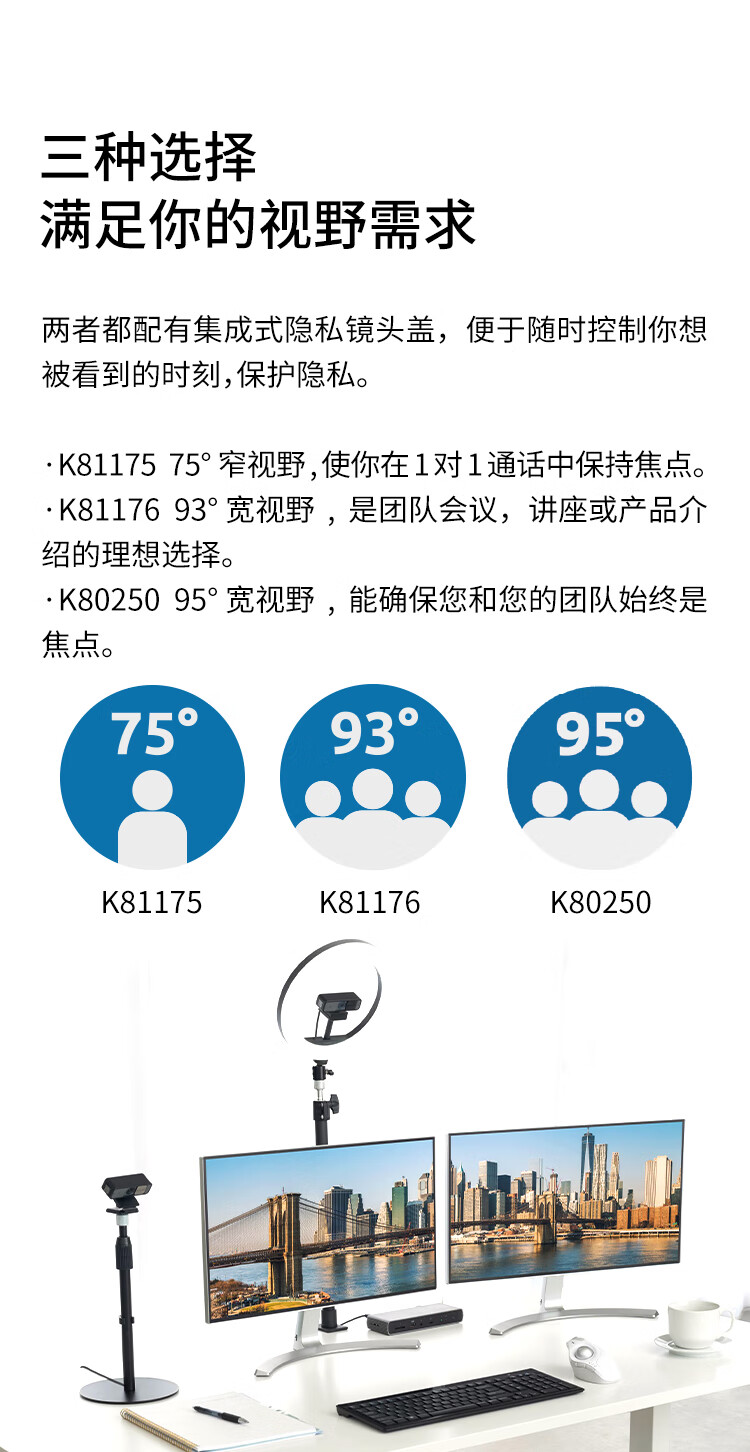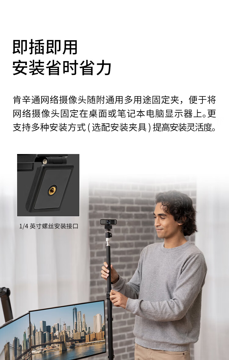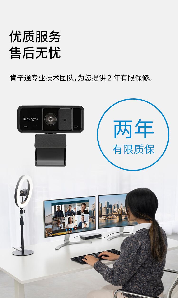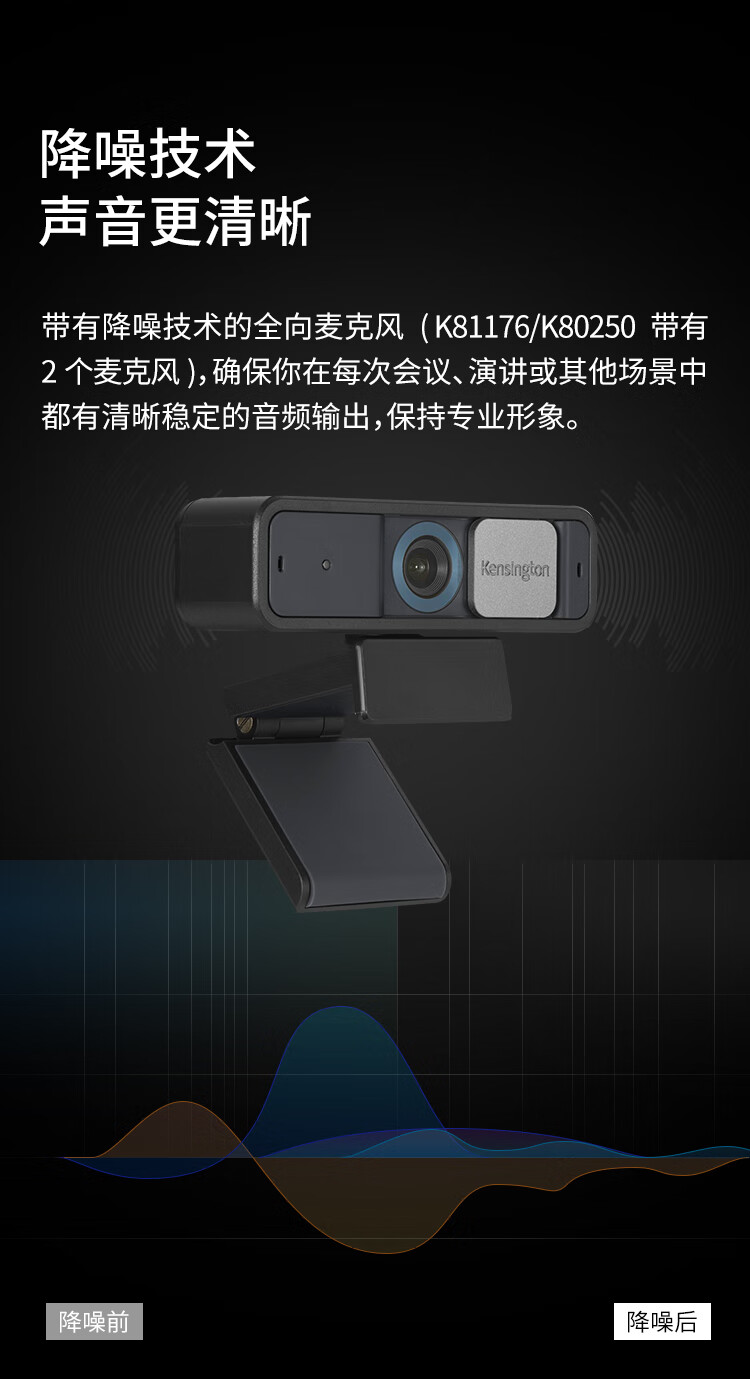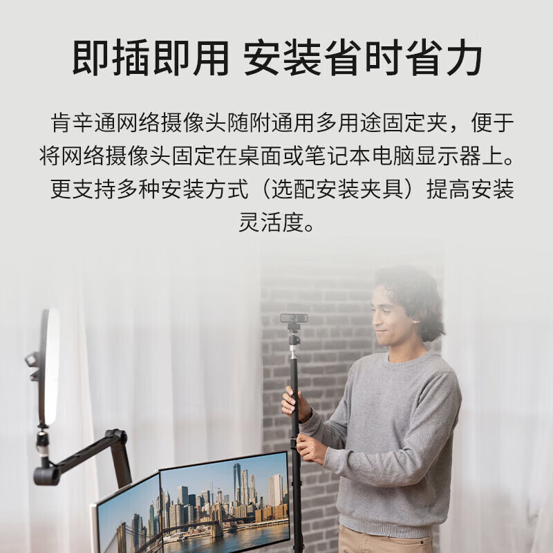肯辛通(Kensington) 摄像头1080P 全高清自动对焦网络摄像头直播网课会议摄像头 K81175 75°视野