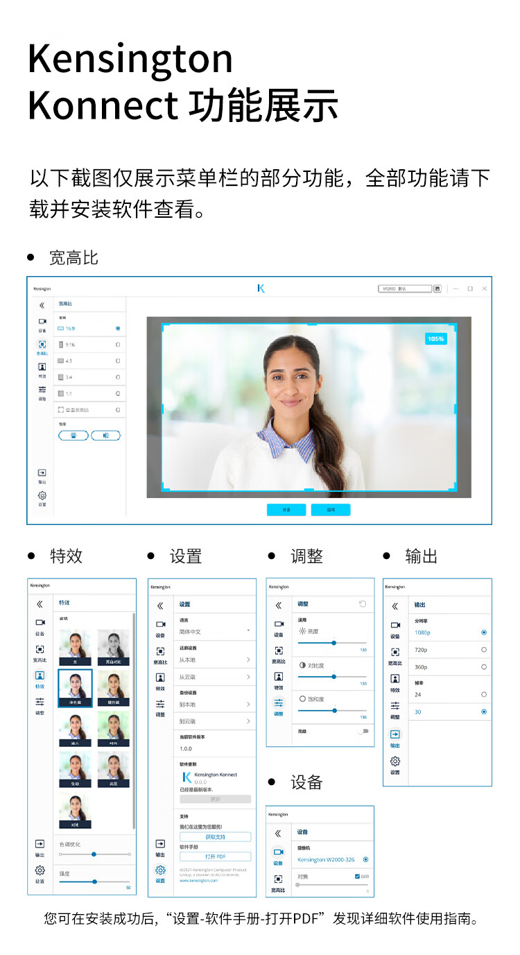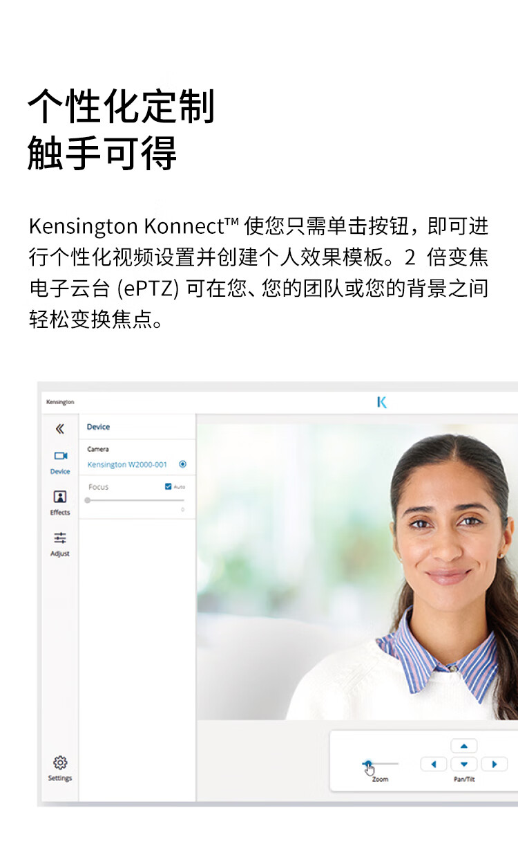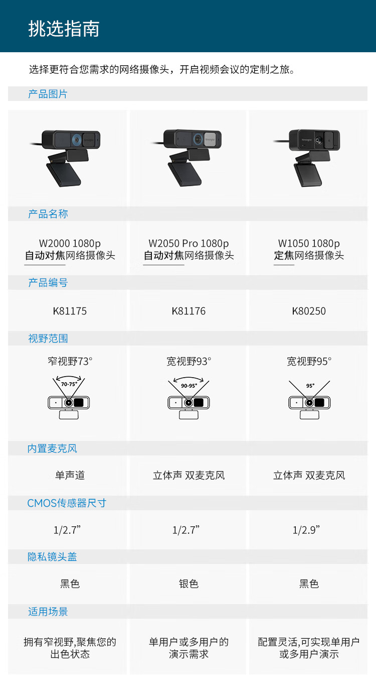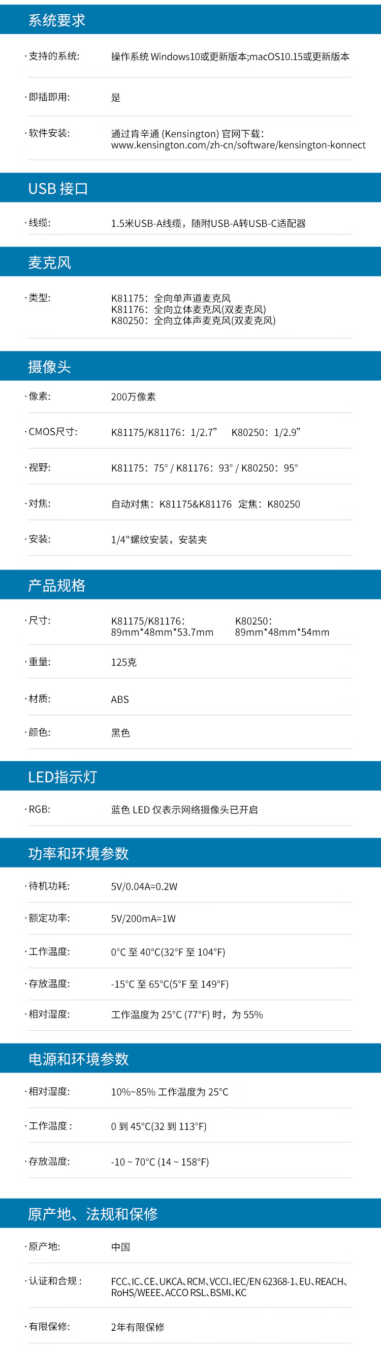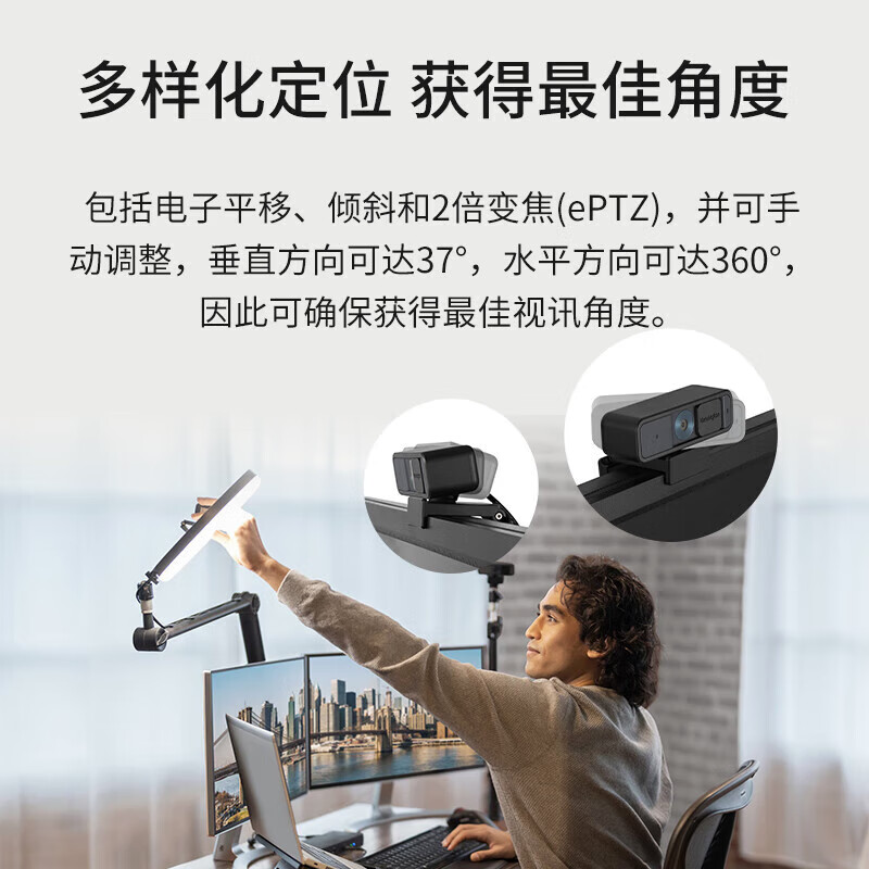肯辛通(Kensington) 摄像头1080P 全高清自动对焦网络摄像头直播网课会议摄像头 K81175 75°视野