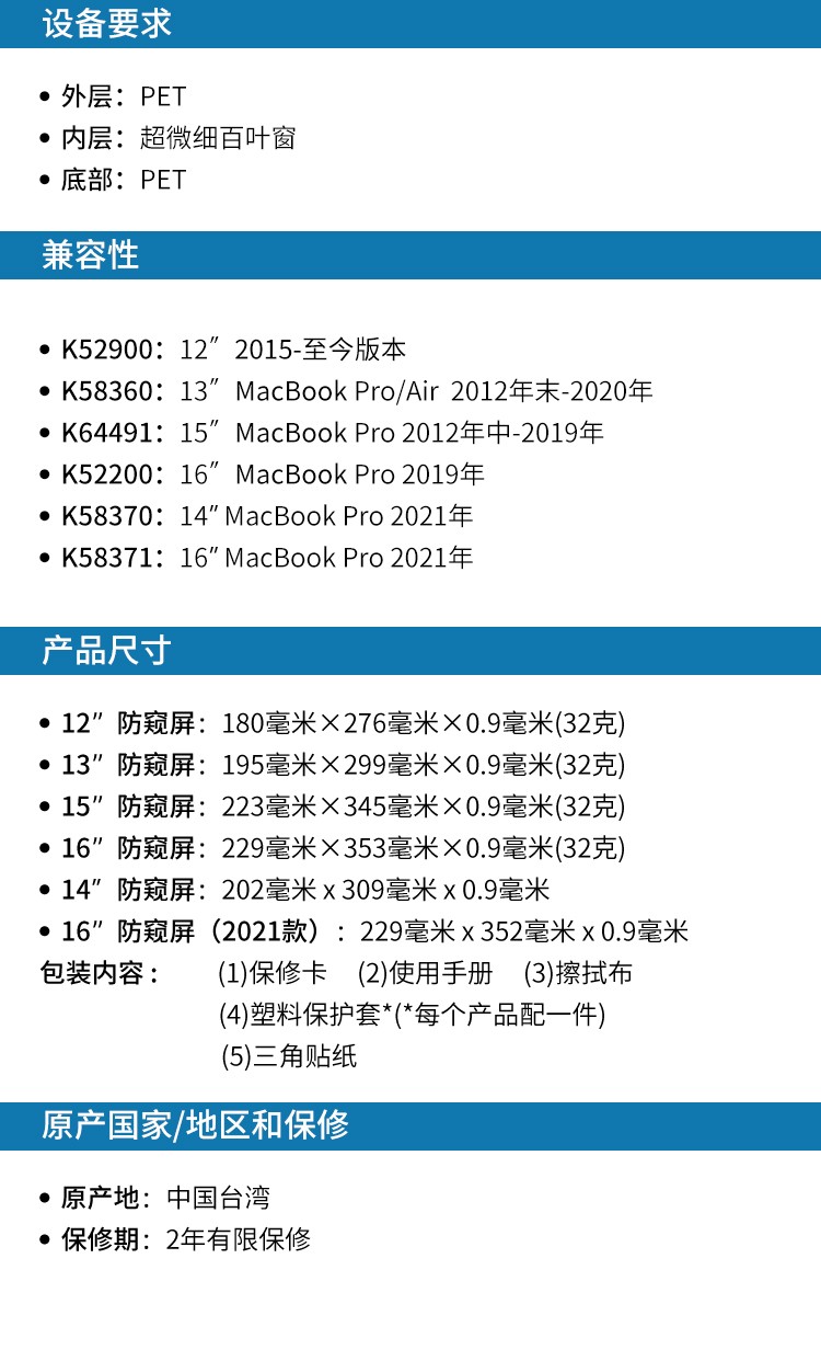 肯辛通(Kensington) MacBook16英寸M1/M3笔记本电脑防窥屏 抗蓝光反光磁吸式双面可用防窥屏 K58371