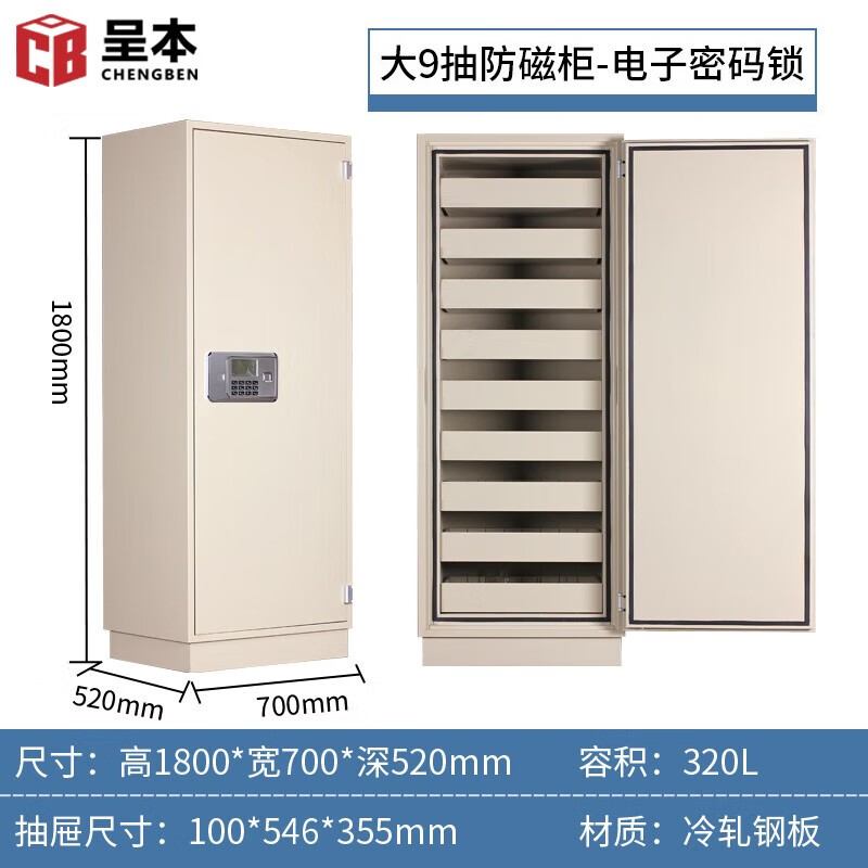 呈本防磁柜光盘U盘音像数据存放柜电子液晶密码锁 大九抽CB-FC19D