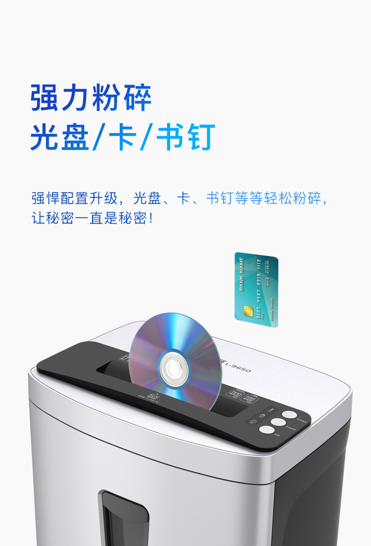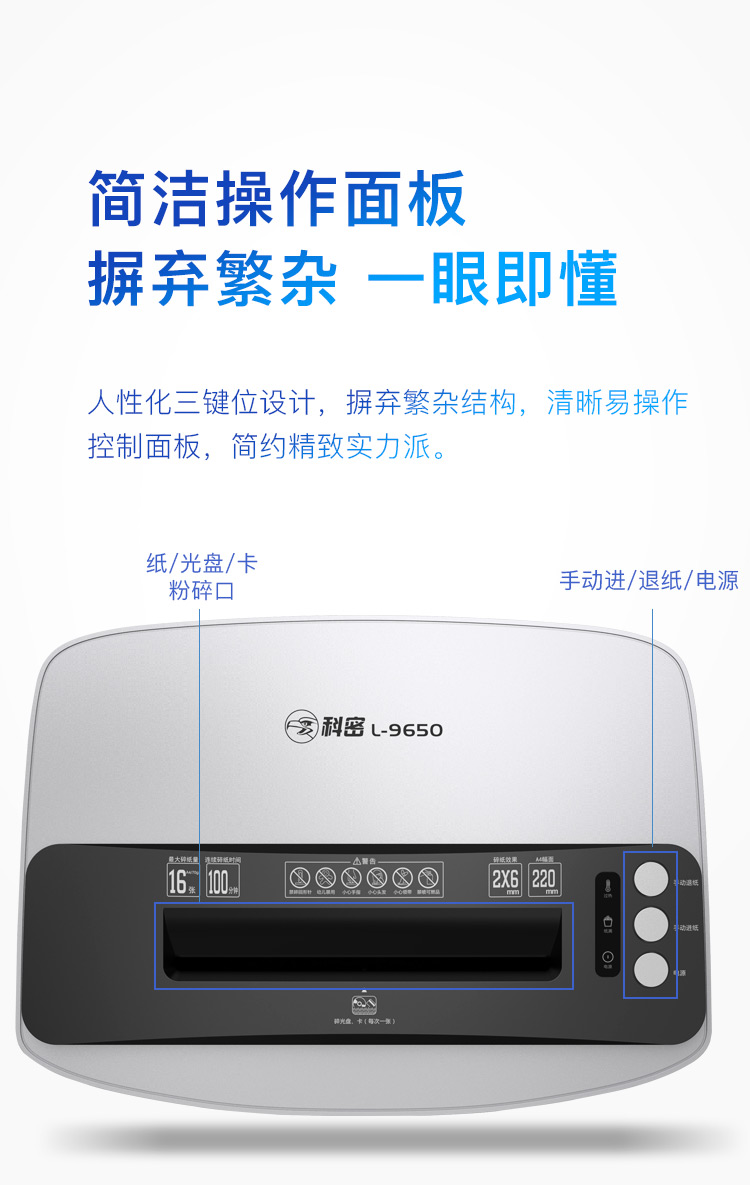 科密(comet)L-9650 5级保密办公商用碎纸机(单次16张 持续100分钟 33L 可碎卡、光盘、订书针)