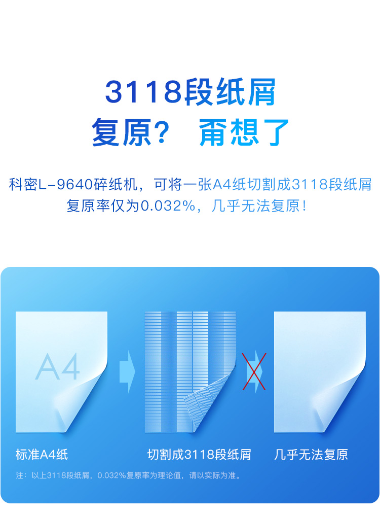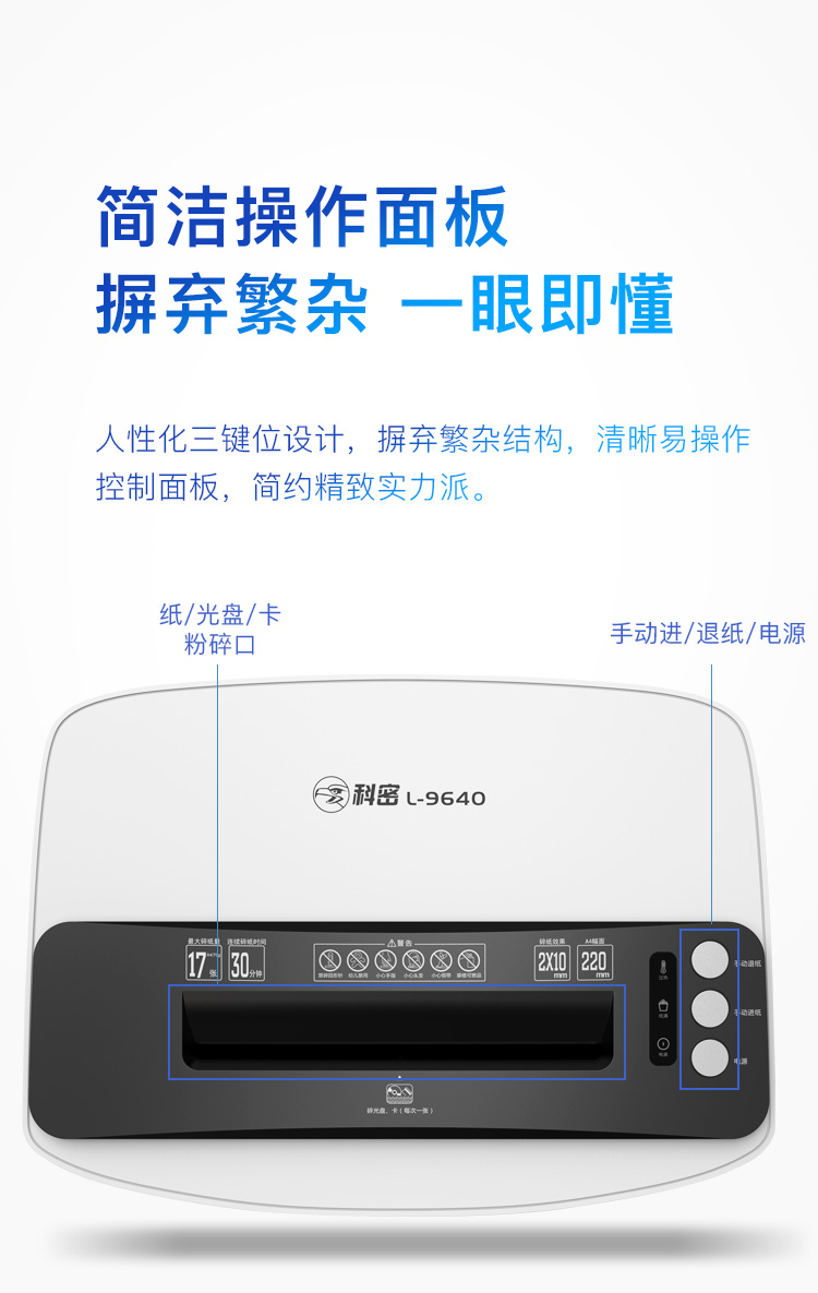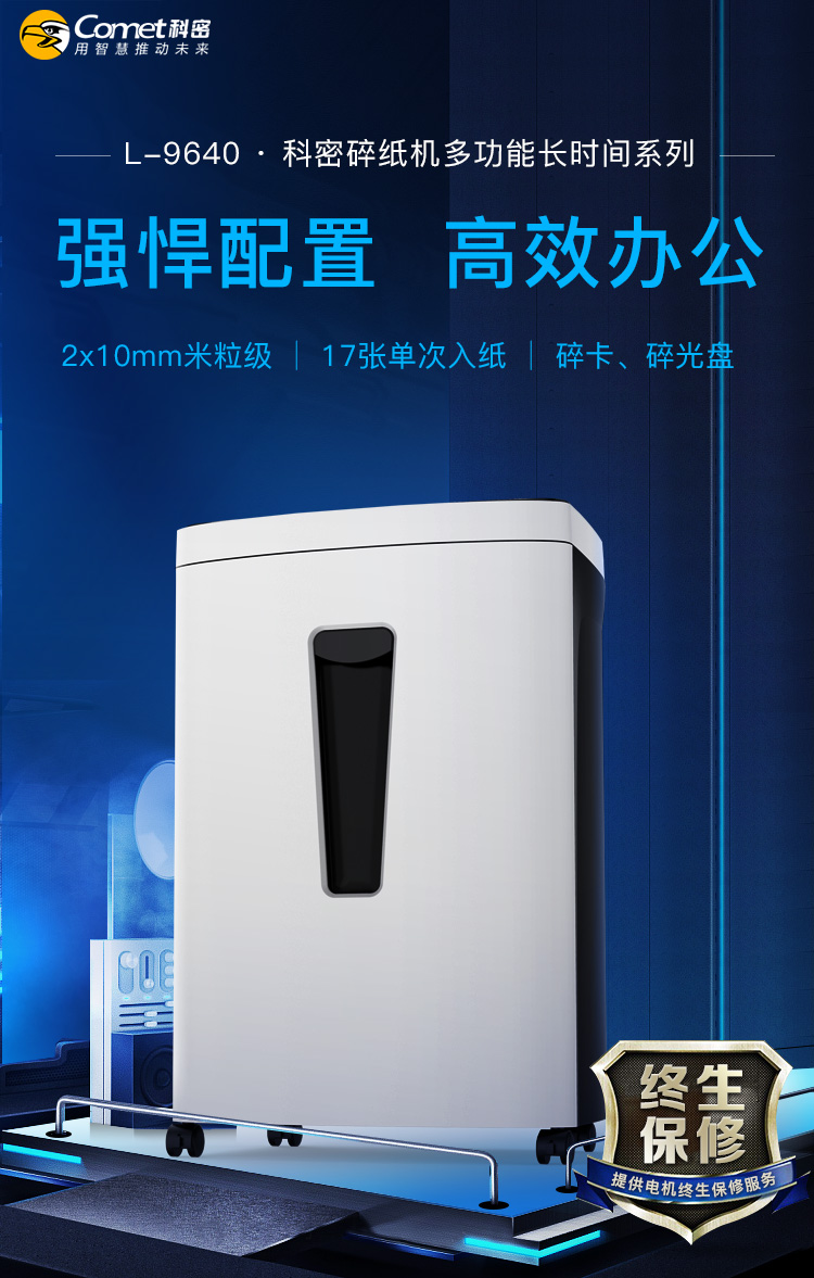 科密(comet)L-9640 5级保密办公商用碎纸机(单次17张 持续30分钟 30L 可碎卡、光盘、订书针)