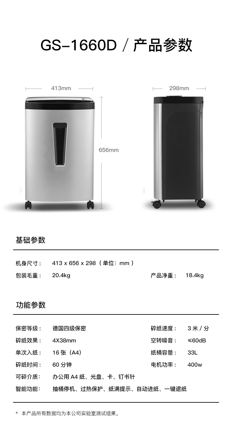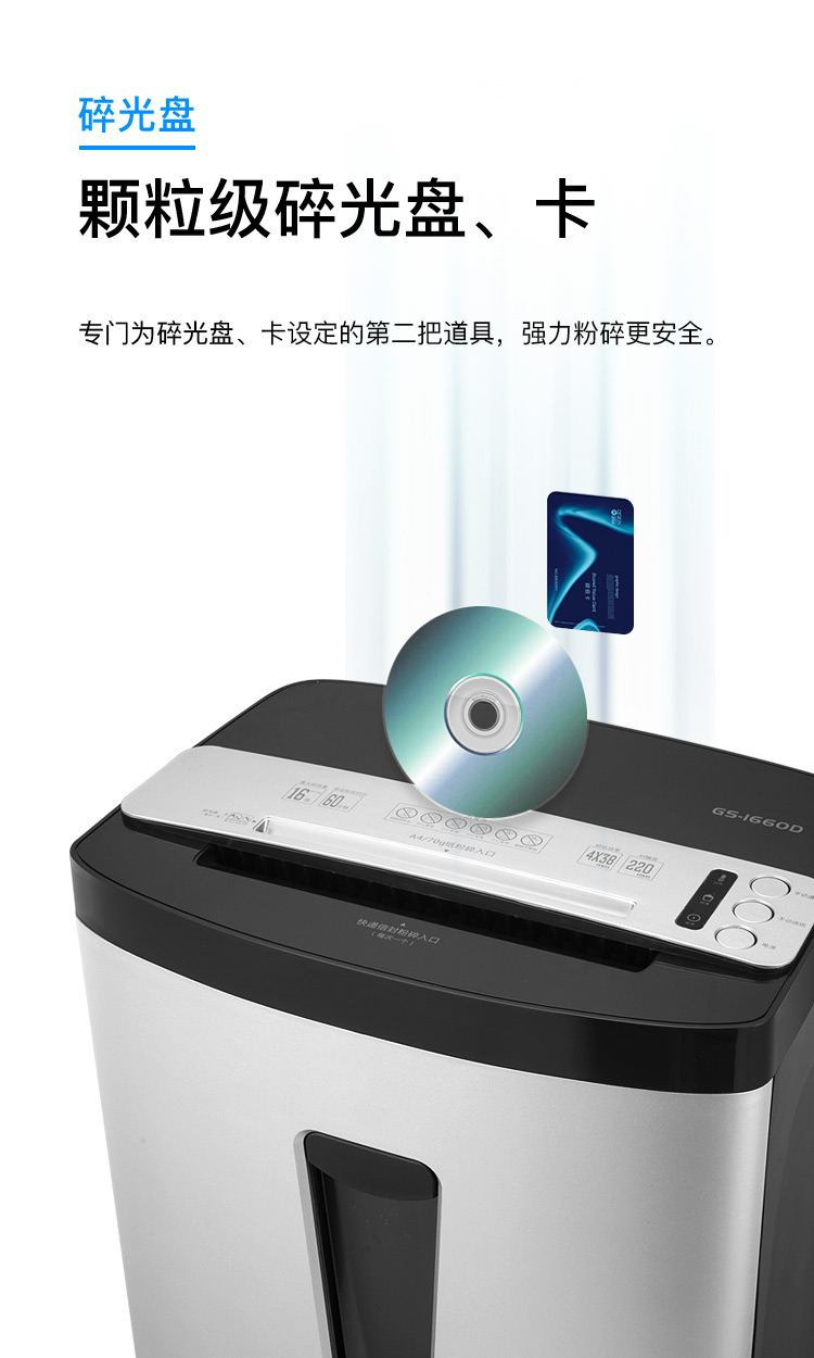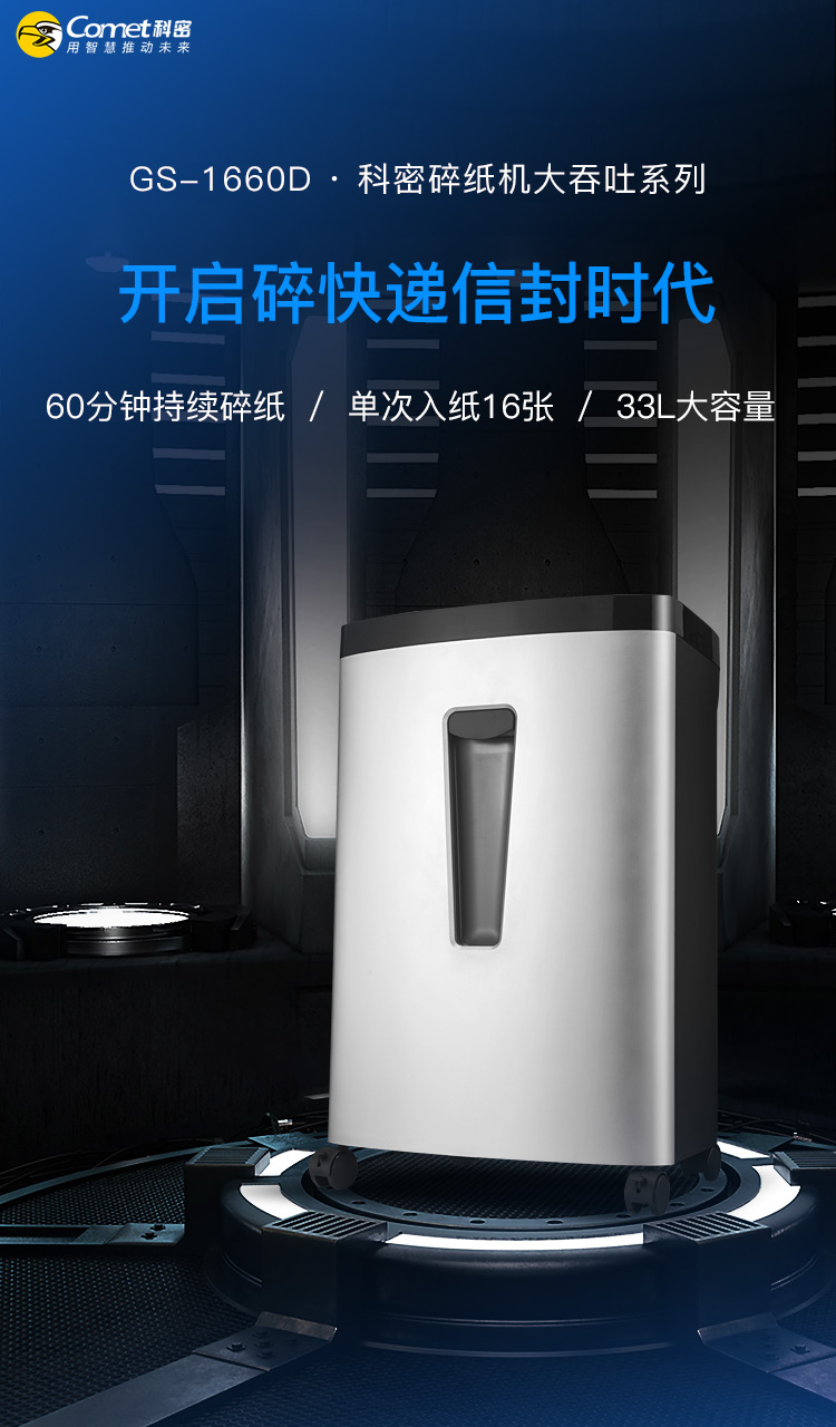 科密(comet)GS-1660D 4级保密办公商用碎纸机(单次16张 持续60分钟 33L可碎卡、光盘)